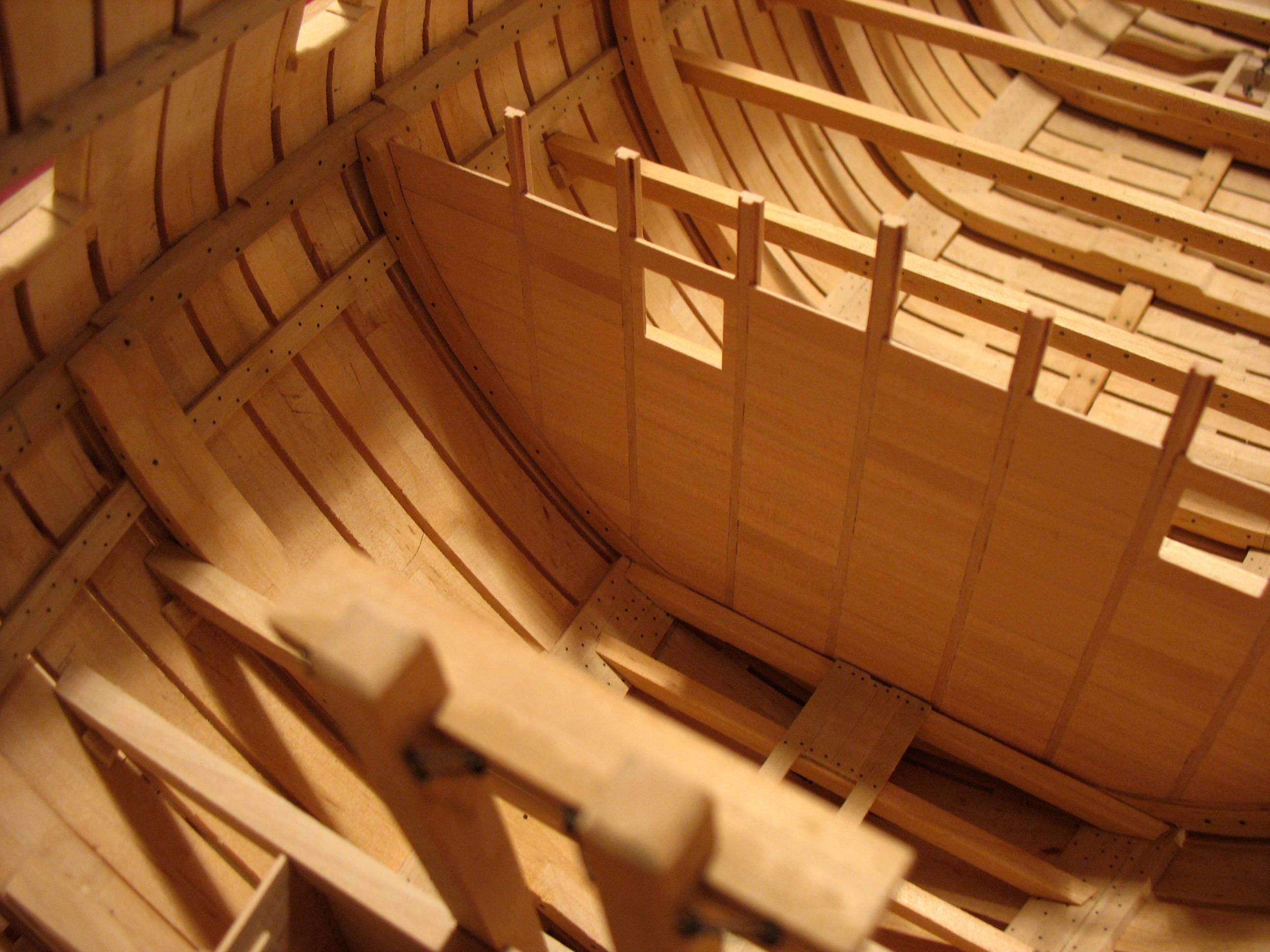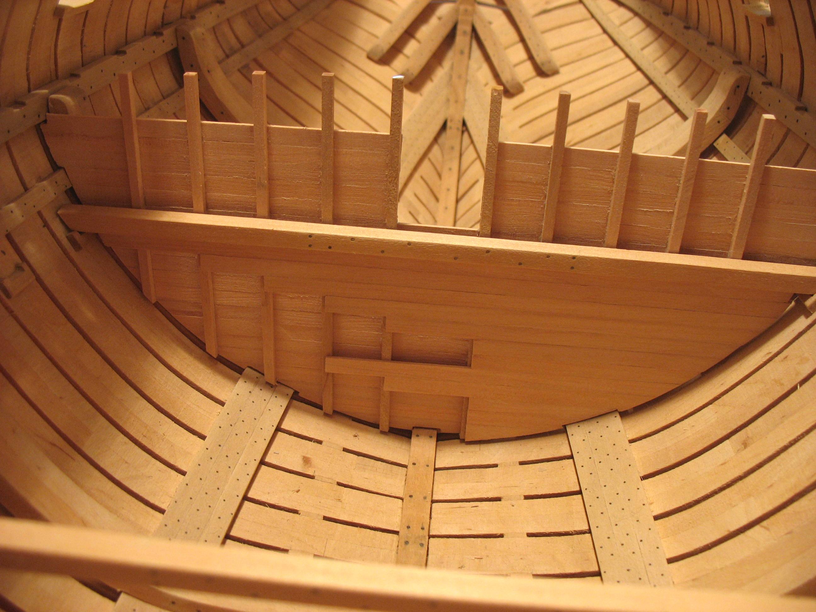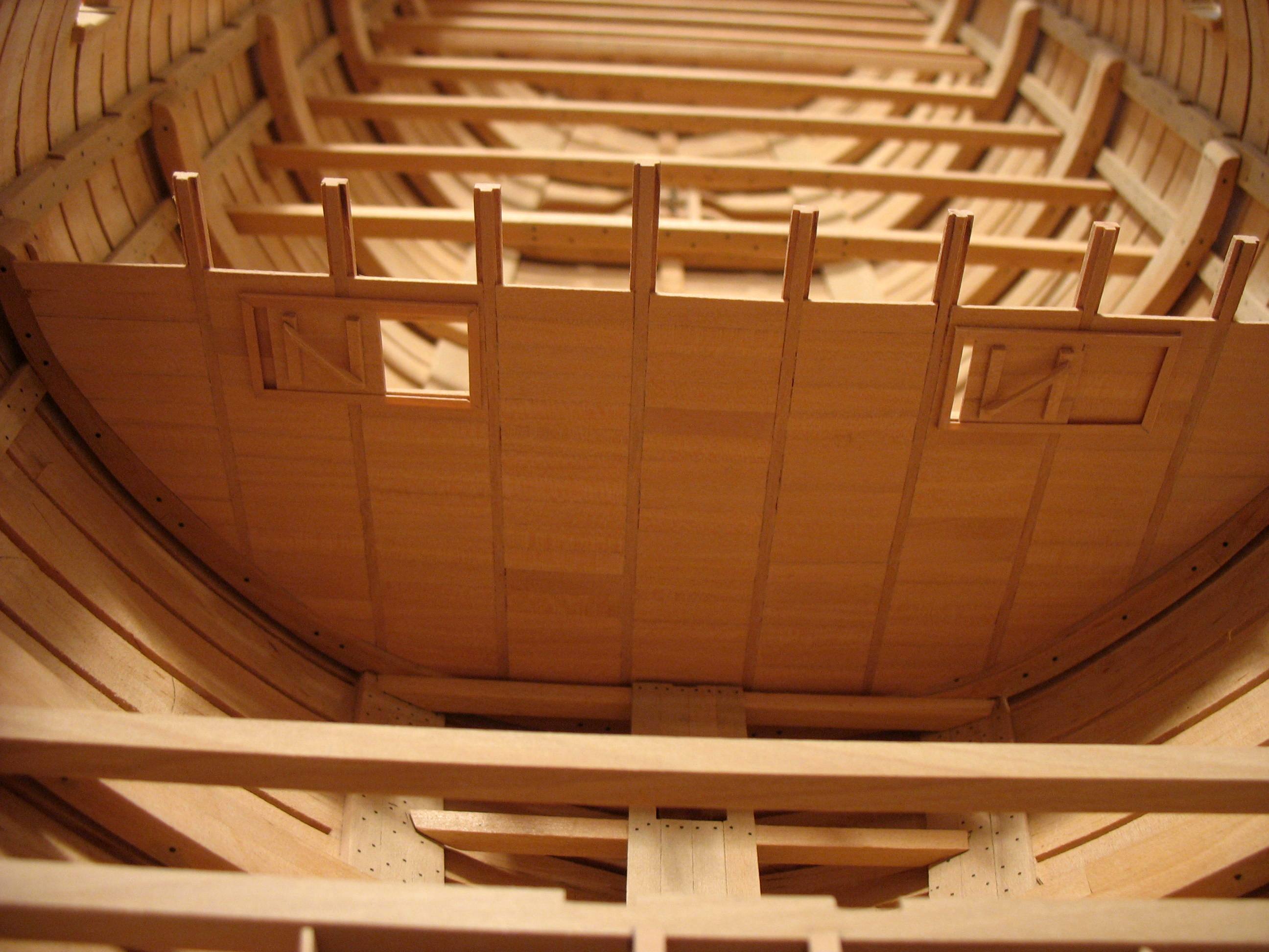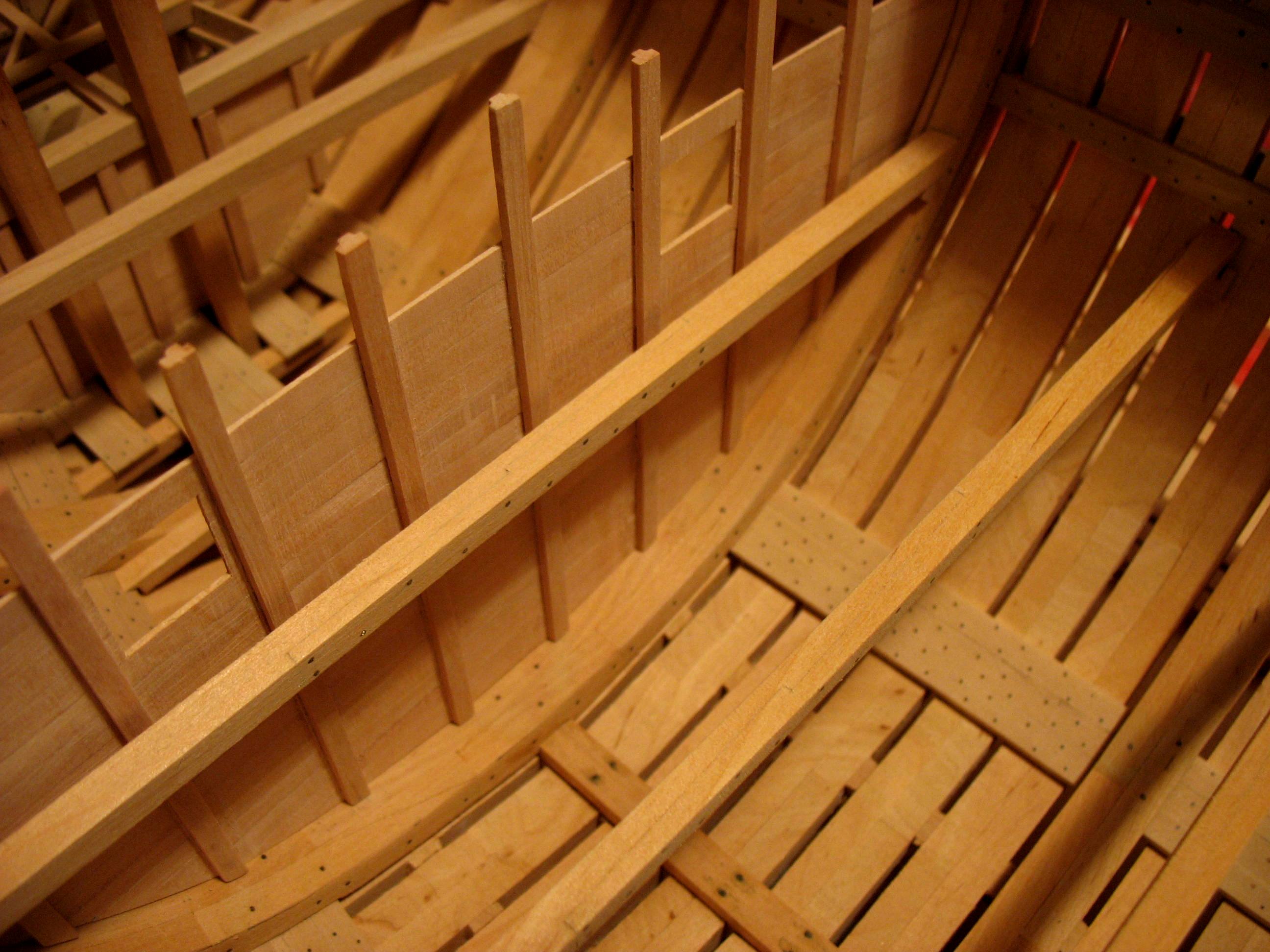 Samo owinięcie pachołów nie wystarczało do całkowitego unieruchomienia liny kotwicznej, dlatego stosowano jeszcze stopery jest to odcinek grubej liny zaczepionej na jednym końcu wokół oczka sworznia metalowego, a z drugiej zakończony w węzeł i mocowany kilkoma cieńszymi linkami do liny kotwicznej.Oczka metalowe były mocowane na dodatkowych belkach ułożonych na pokładzie przed pachołami kotwicznymi w kierunku dziobu będzie to wykonane w późniejszym czasie jak zostanie zrobiony pokład.
