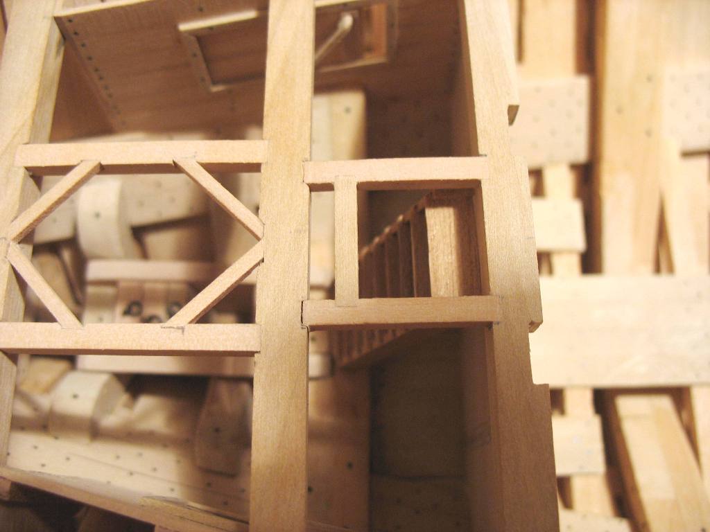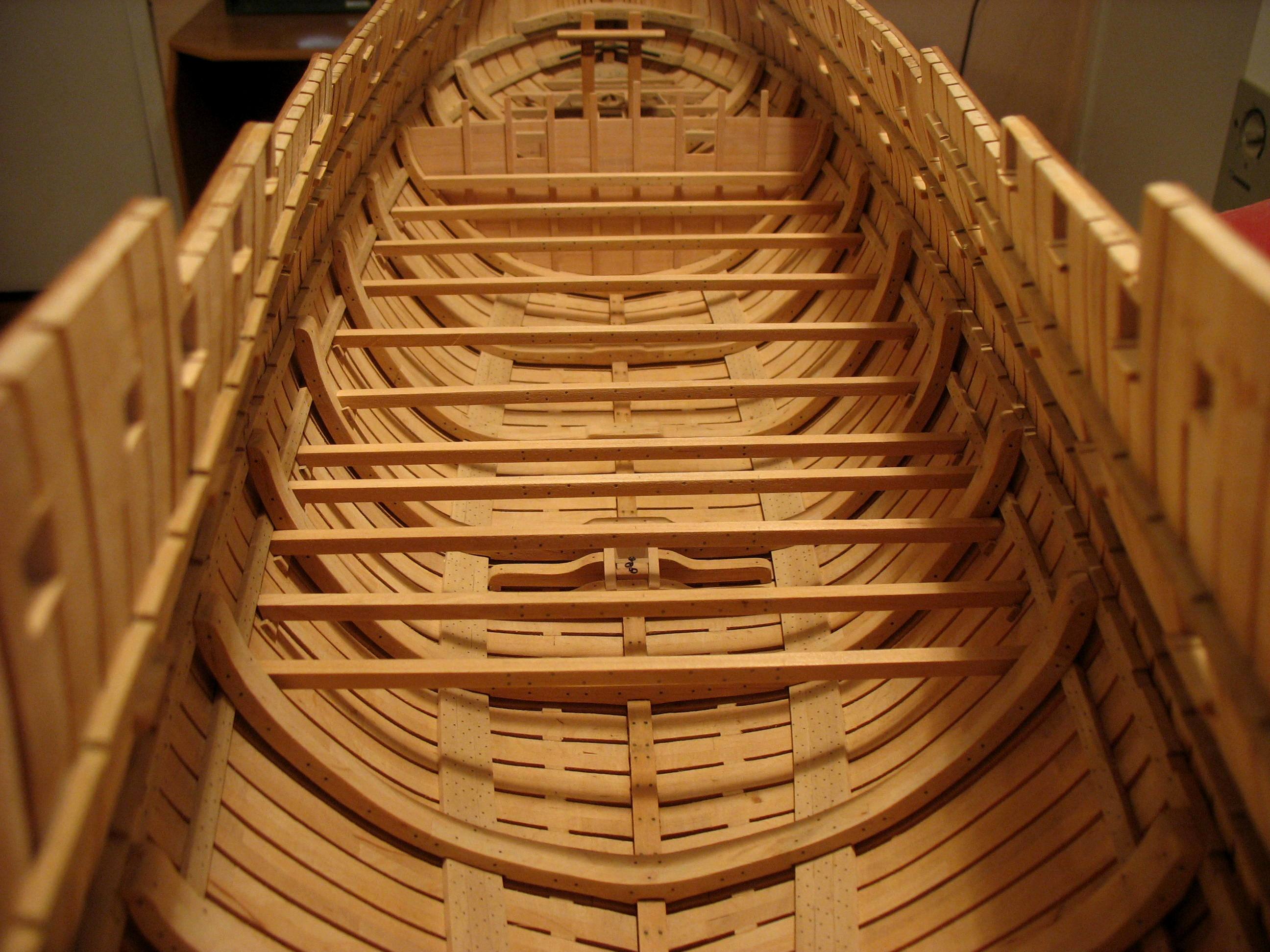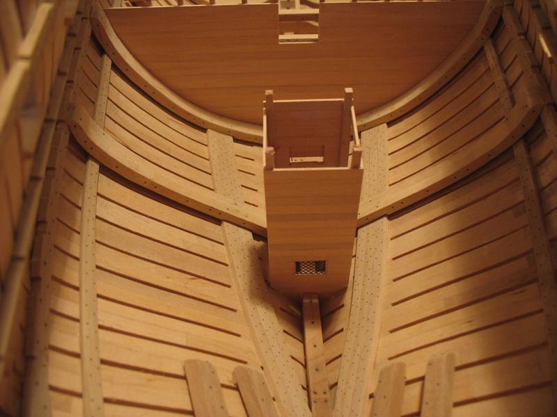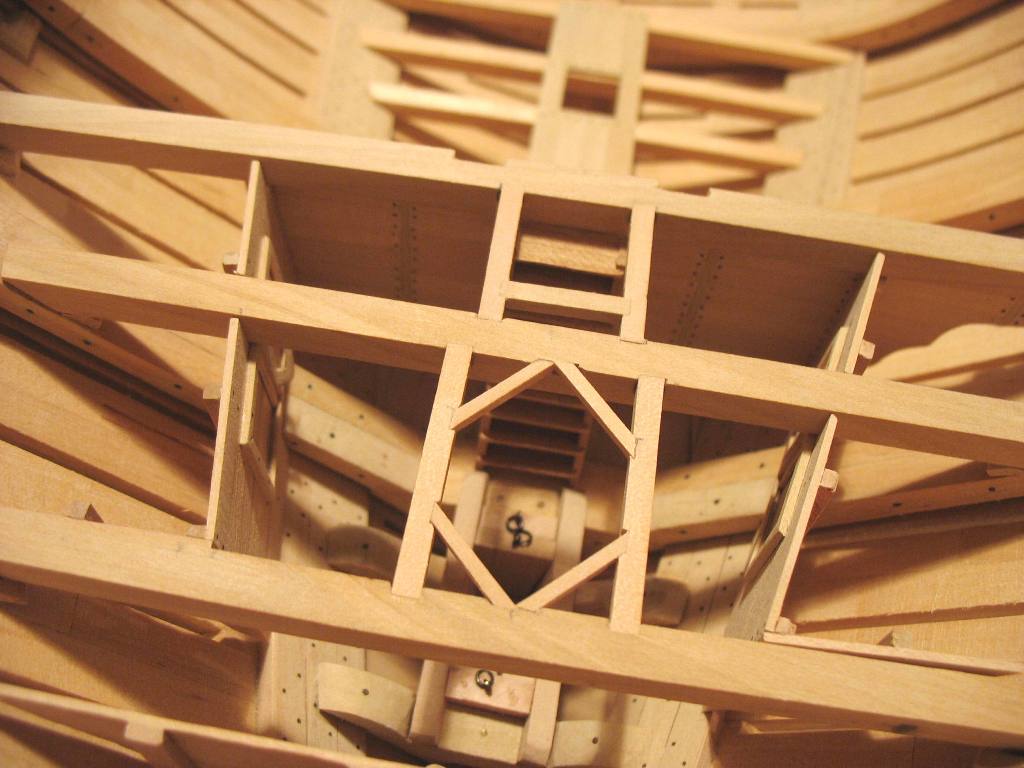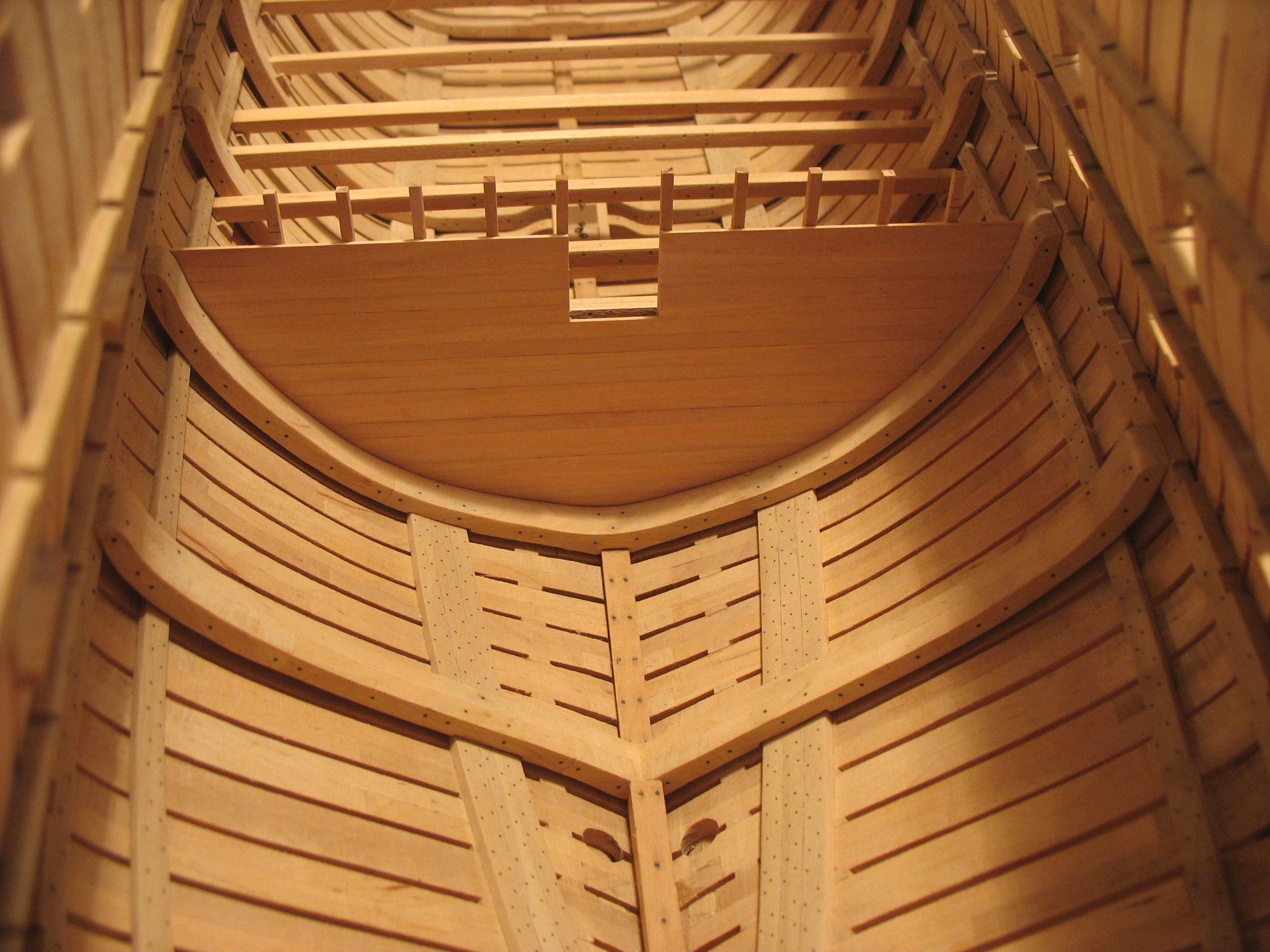 Samo owinięcie pachołów nie wystarczało do całkowitego unieruchomienia liny kotwicznej, dlatego stosowano jeszcze stopery jest to odcinek grubej liny zaczepionej na jednym końcu wokół oczka sworznia metalowego, a z drugiej zakończony w węzeł i mocowany kilkoma cieńszymi linkami do liny kotwicznej.Oczka metalowe były mocowane na dodatkowych belkach ułożonych na pokładzie przed pachołami kotwicznymi w kierunku dziobu będzie to wykonane w późniejszym czasie jak zostanie zrobiony pokład.