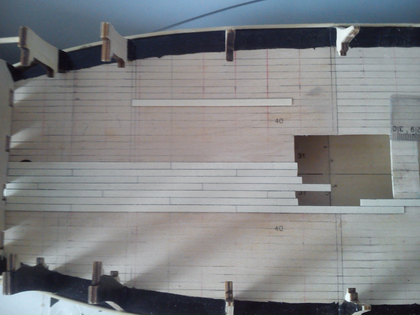 W moim zamyśle ten pokład zrobię widoczny przez furty działowe .Będzie obsadzony kompletnymi działami z olinowaniem i wyposażeniem pokładu.Taki jest zamysł, a jak wyjdzie w praktyce to się zobaczy.