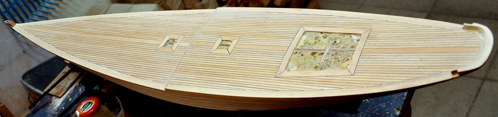 Dzięki wskazówkom bardziej doświadczonych kolegów wykończyłem prawie pokład. Kołkowanie klepek pokładu zrobione jest igłą lekarską fi.0,5 mm (wewnętrzna średnica fi.,04 ). Bardzo dobry pomysł. Mnie to jeszcze niespecjalnie wychodzi, ale w następnym modelu będzie już lepiej i jeszcze lepiej.