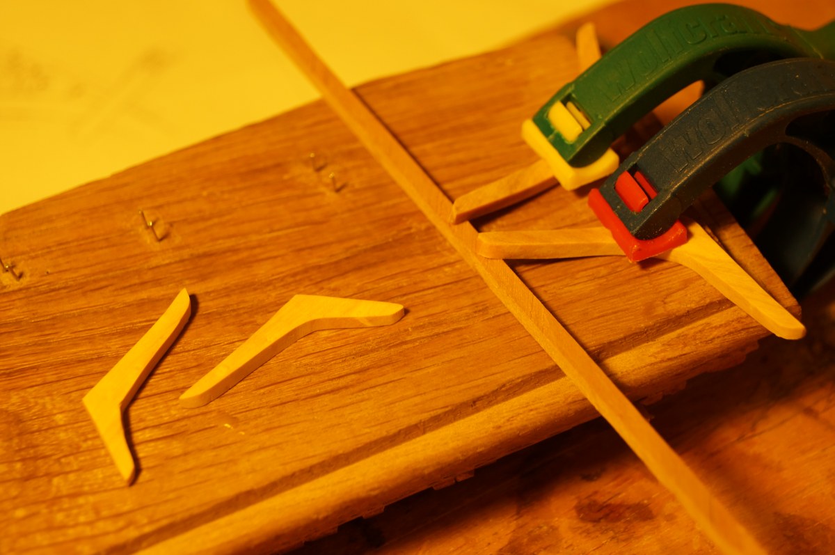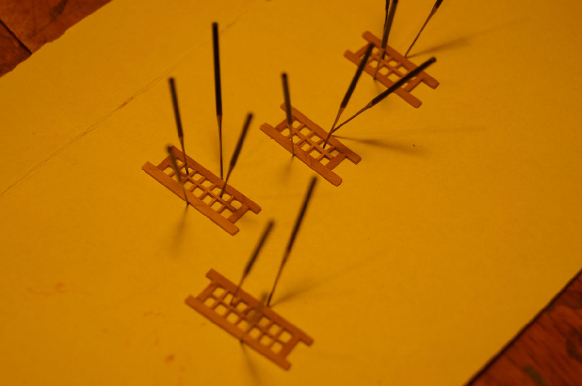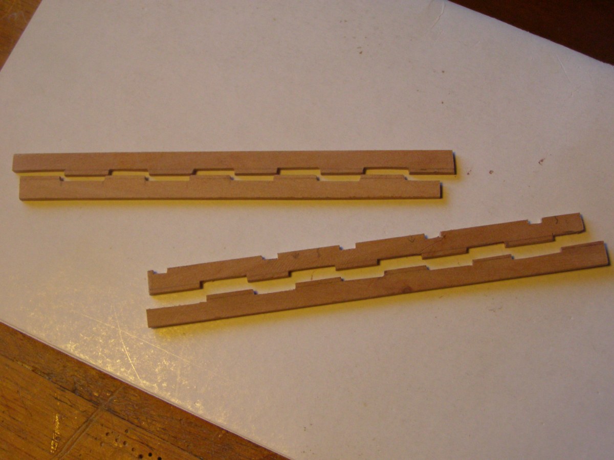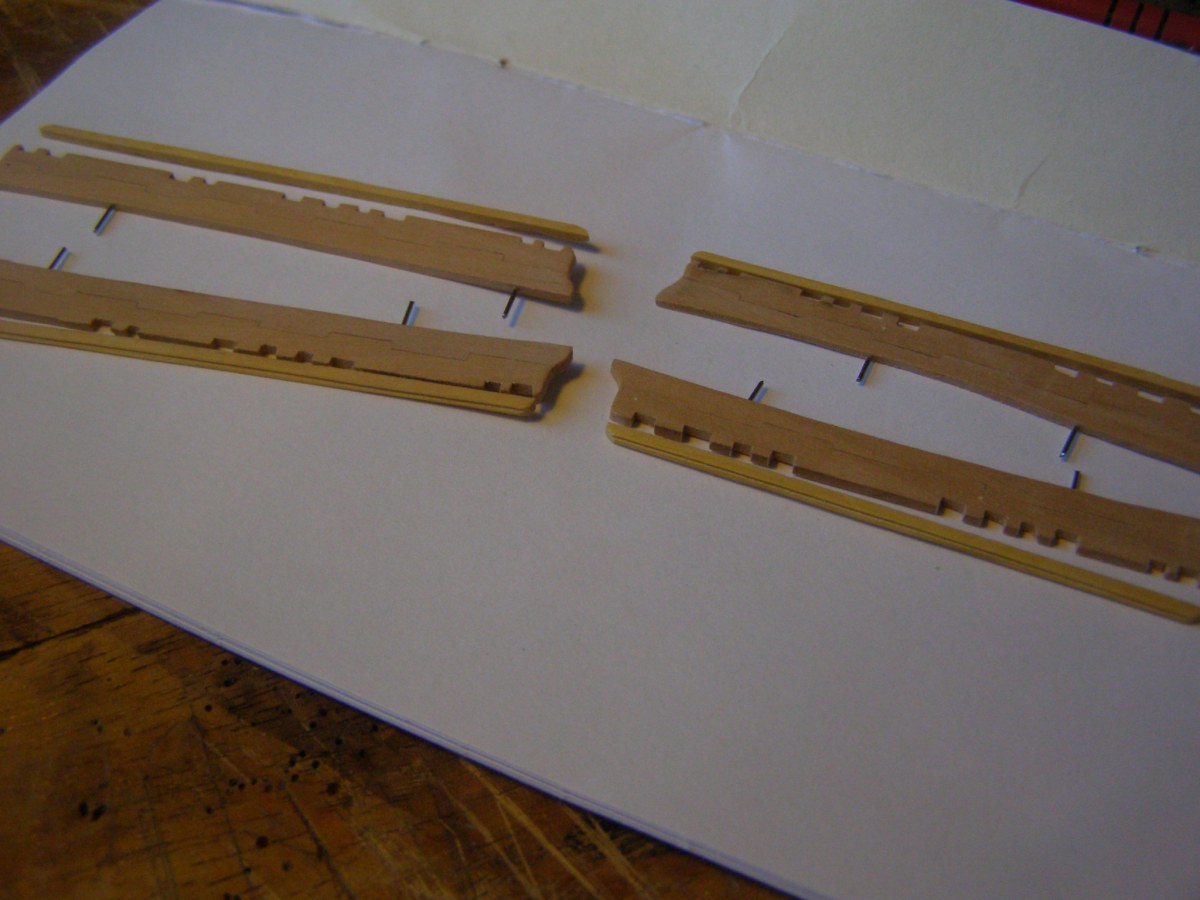 Ciąg dalszy czyli ławy wantowe i jufersy. Ławy mogłem zrobić z jednego kawałka, bo po pomalowaniu i tak nie widać wielkiej różnicy. Postanowiłem się pobawić w docinanie, żeby sobie poćwiczyć na przyszłość takie rzeczy.