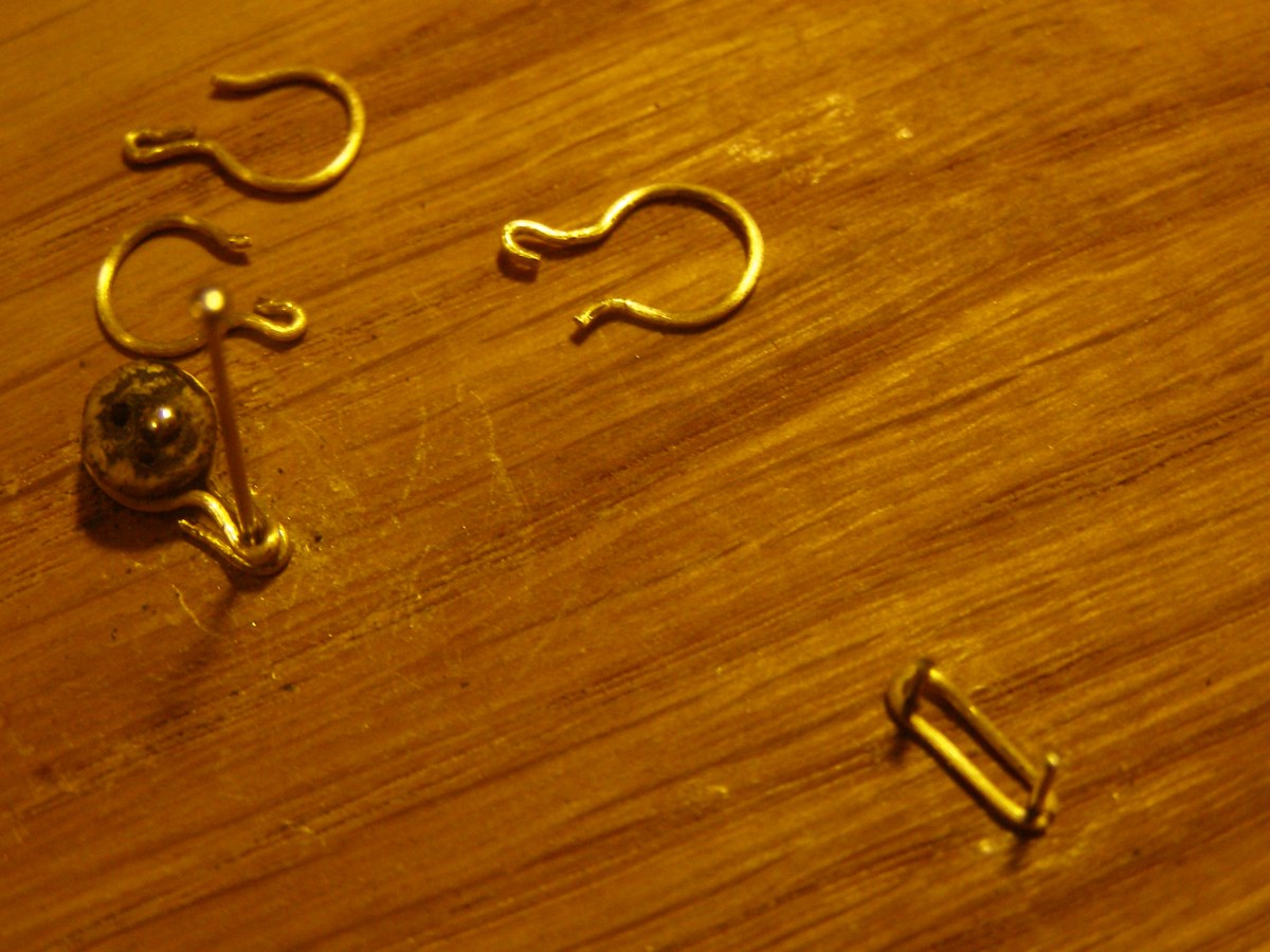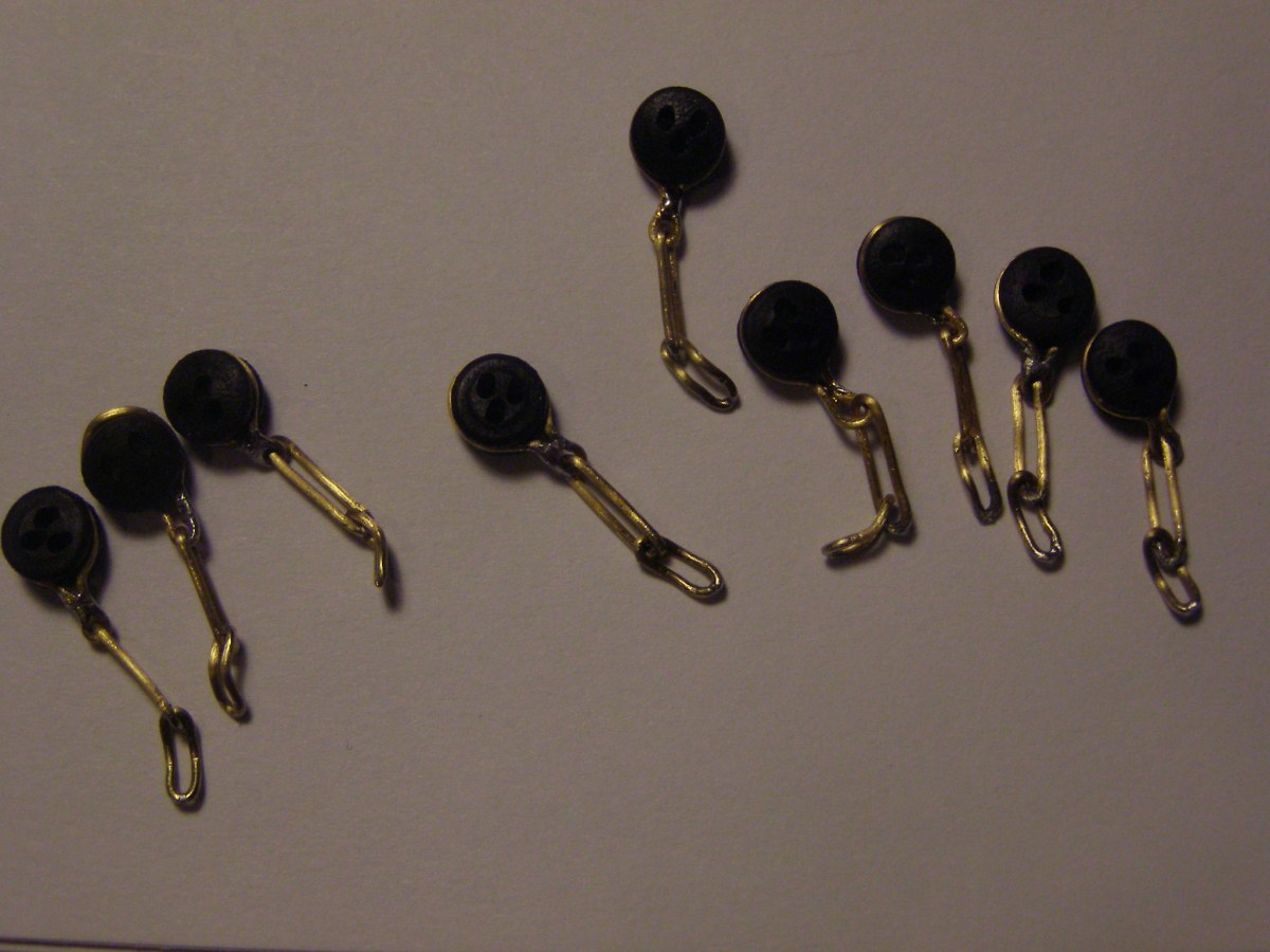 Powoli do przodu. Mocowania jufersów zrobiłem, w zależności od ich średnicy, z drutu mosiężnego 0.6, 0.5 i 0.4mm. Po powyginaniu całonocna kąpiel w acetonie, później lutowanie. Na koniec oksyda, a czego ona nie złapała poprawiłem metalizerem "dark iron".