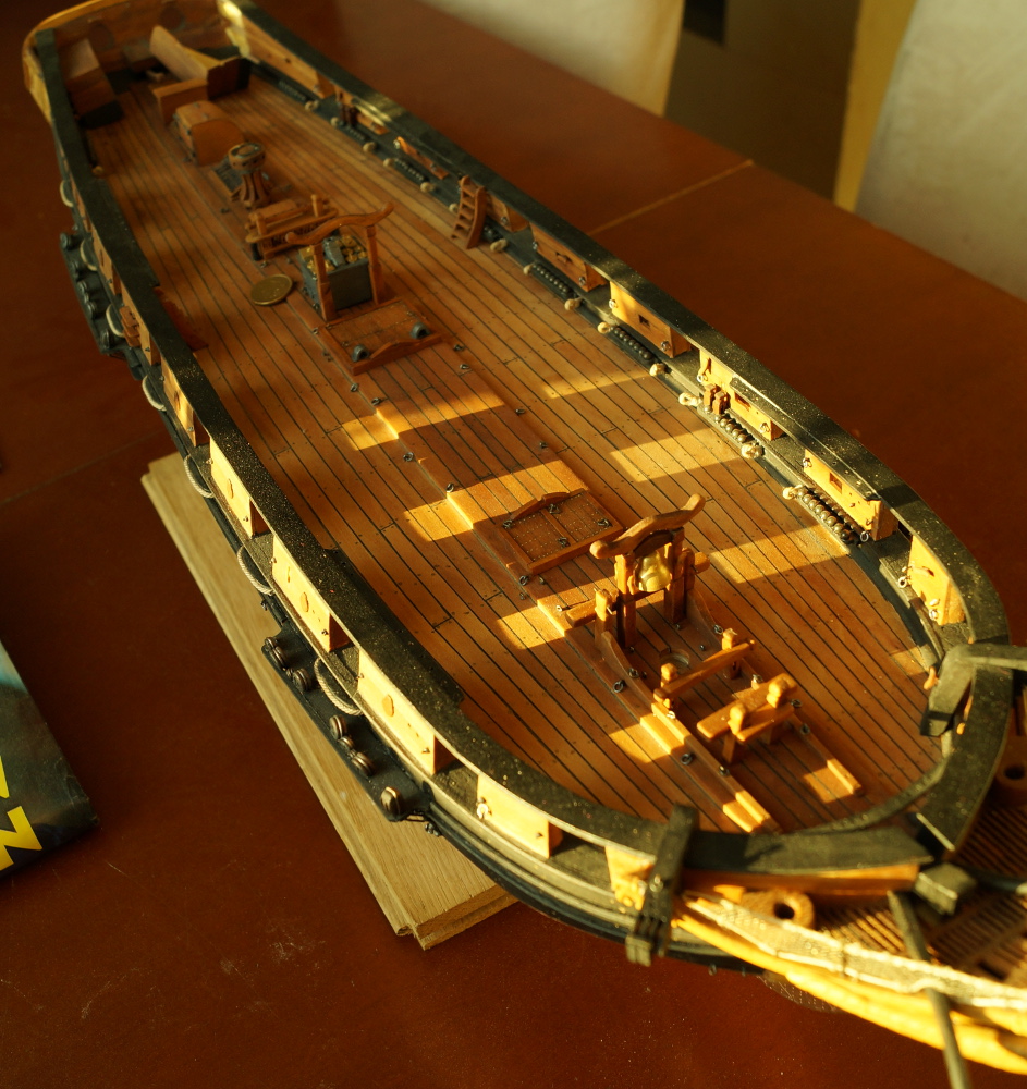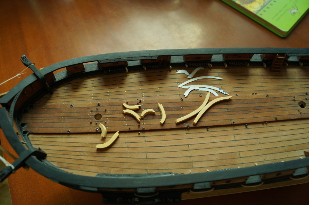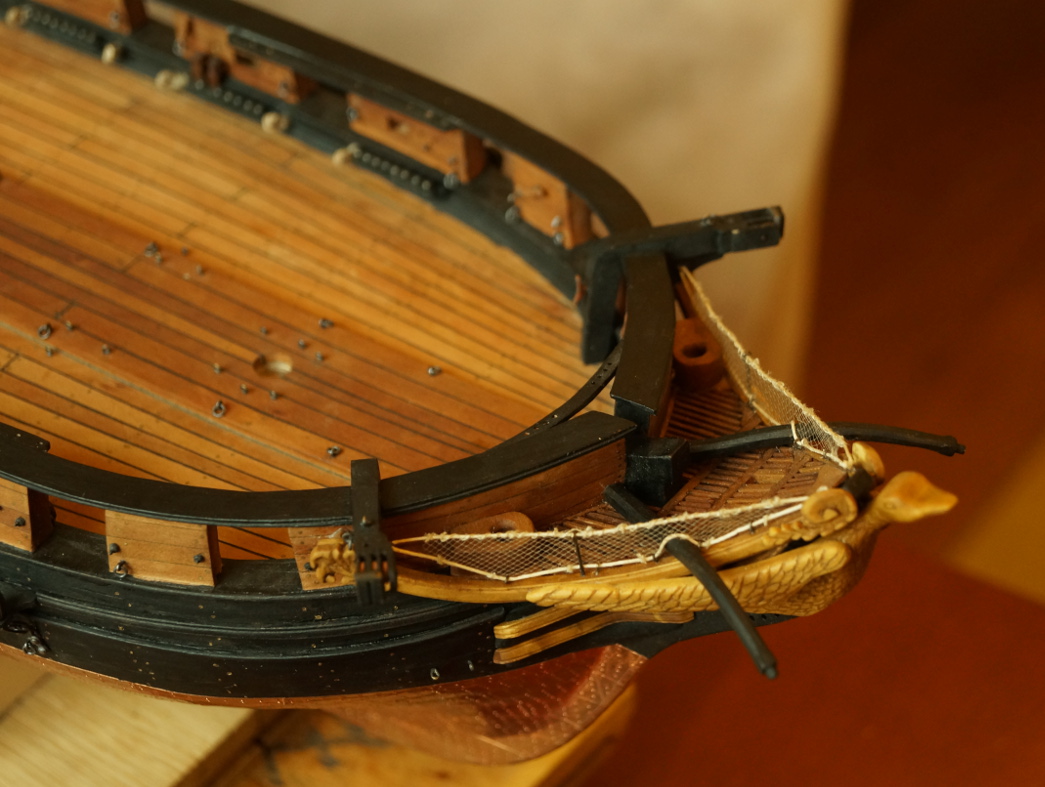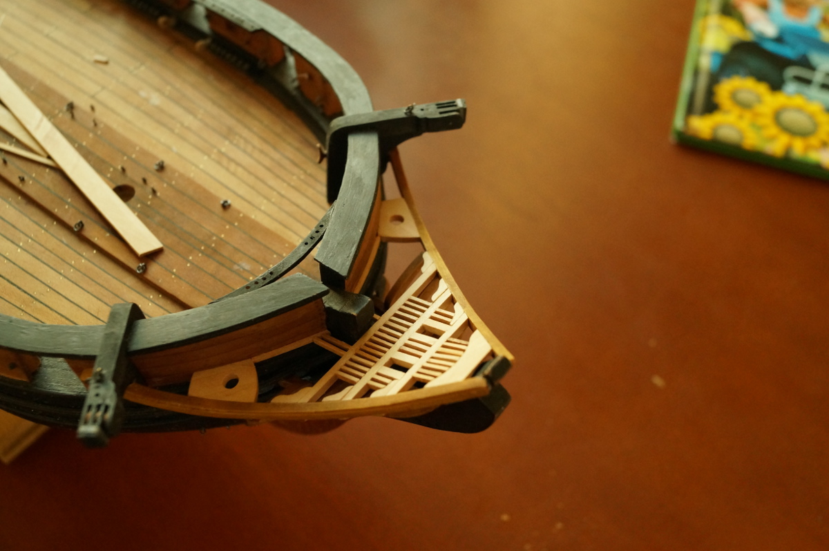 Kosz dziobowy - cz.3. Pomost nad koszem dziobowym zrobiony z listewek 0.8x1.2mm + kilka dekorów.