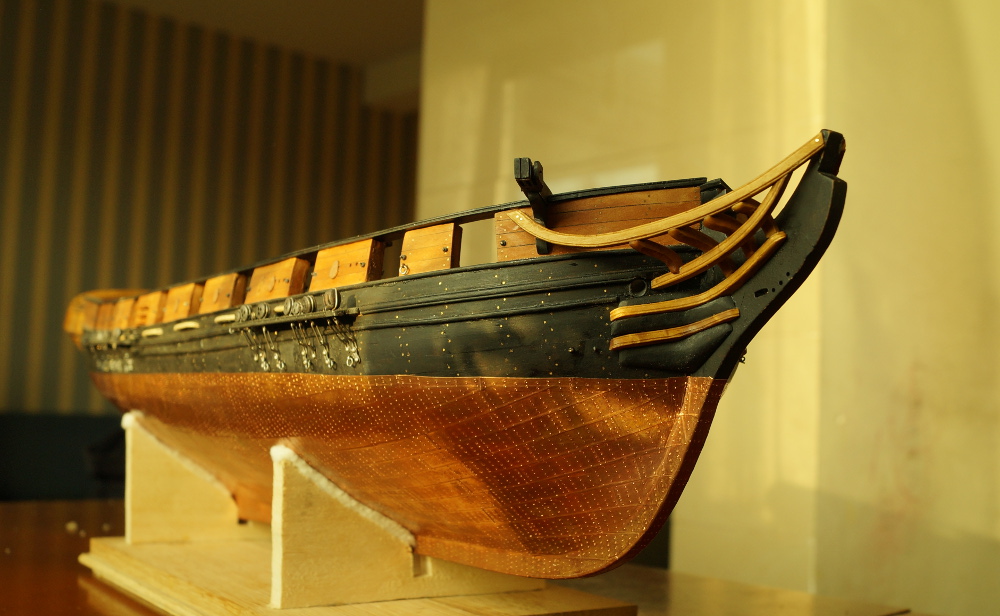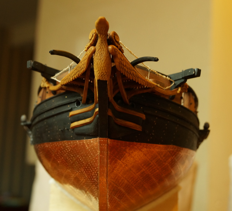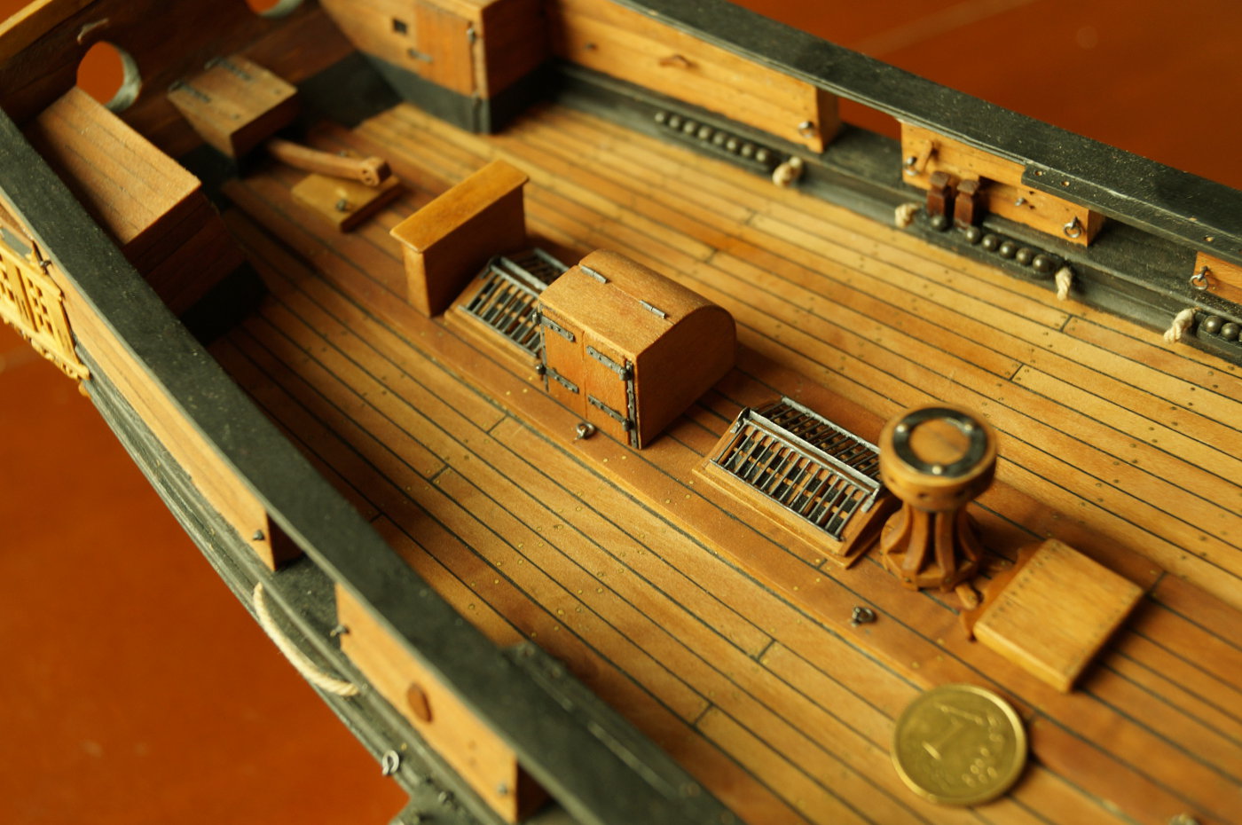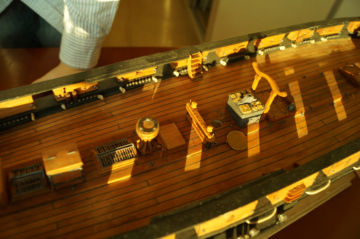 Kosz dziobowy - cz.3. Pomost nad koszem dziobowym zrobiony z listewek 0.8x1.2mm + kilka dekorów.