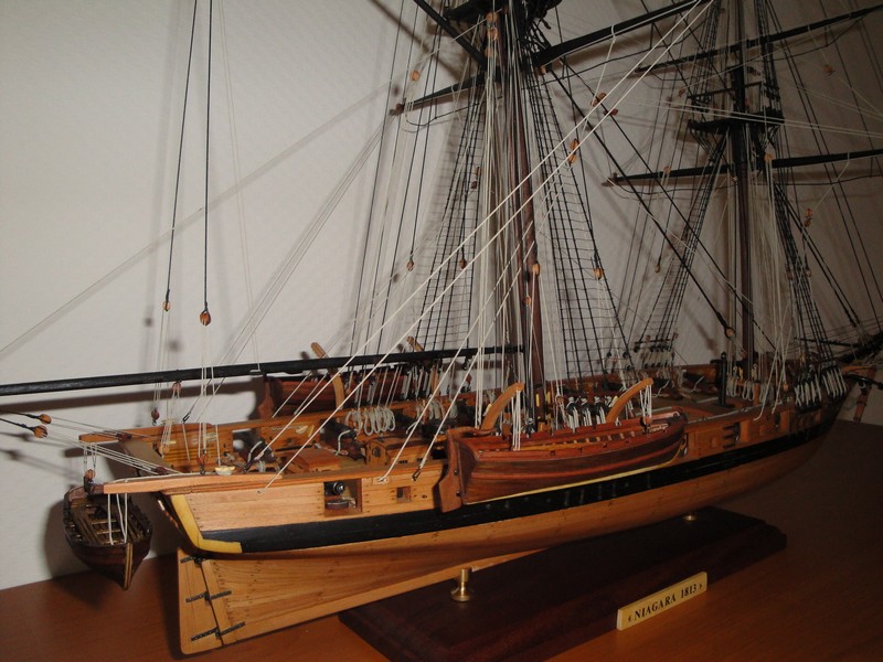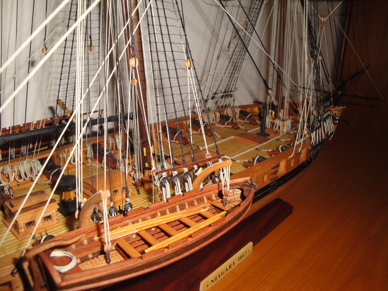 ), po prawie roku budowy uwazam model Niagary za skonczony. Szalupy zostaly umieszczona na swoich miejscach. Przy tej okazji chcialbym serdecznie podziekowac wszystkim za kibicowanie przy tej relacji, za podbudowujace opinie i konstruktywne uwagi, tez te krytyczne, ktore bardzo mi pomogly przy budowie. Szczegolnie dziekuje Mirkowi za intensywna pomoc przy budowie w postaci calego szeregu super wykonanych elementow konstrukcyjnych. Dla mnie to byla pierwsza relacja "na zywo" i jak sie okazalo, bardzo pozytywne doswiadczenie. Gablota juz gotowa, ale czekam jeszcze na zamowiona bandere. Teraz sie trzeba bedzie zastanowic, co nastepne.