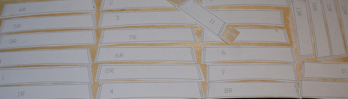 Przygotowane do wycięcia szablony do ustawiania wsporników nadburci