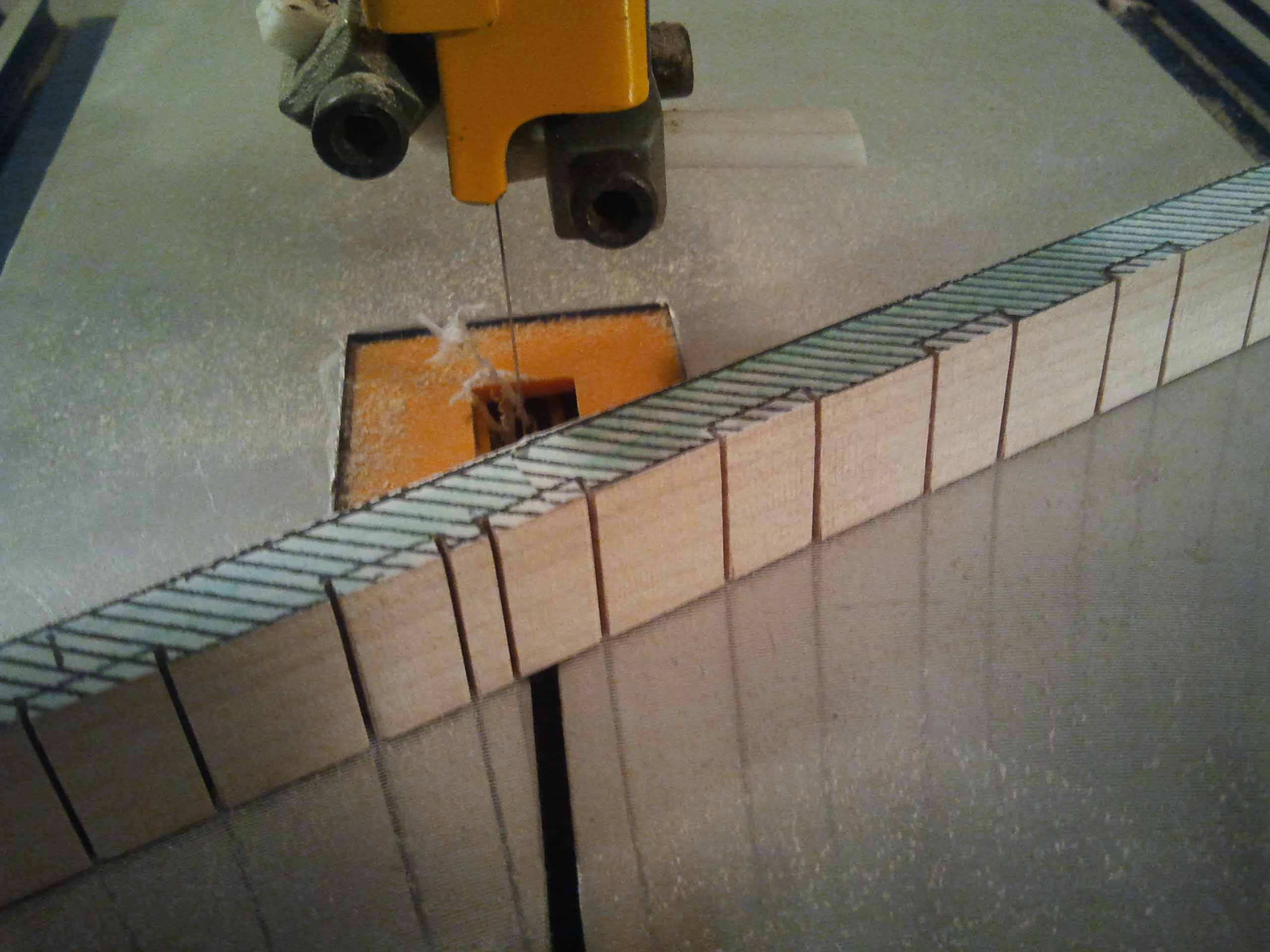 Piła taśmowa jest niezastąpiona.Materiał na części ma 16 mm grubości.