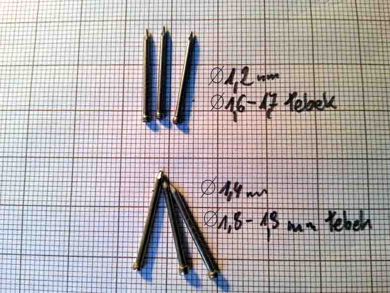 trafiłem małe gwoździe.Te mniejsze można ładnie poczernić oksydą do broni,te większe w kolorze mosiądzu.