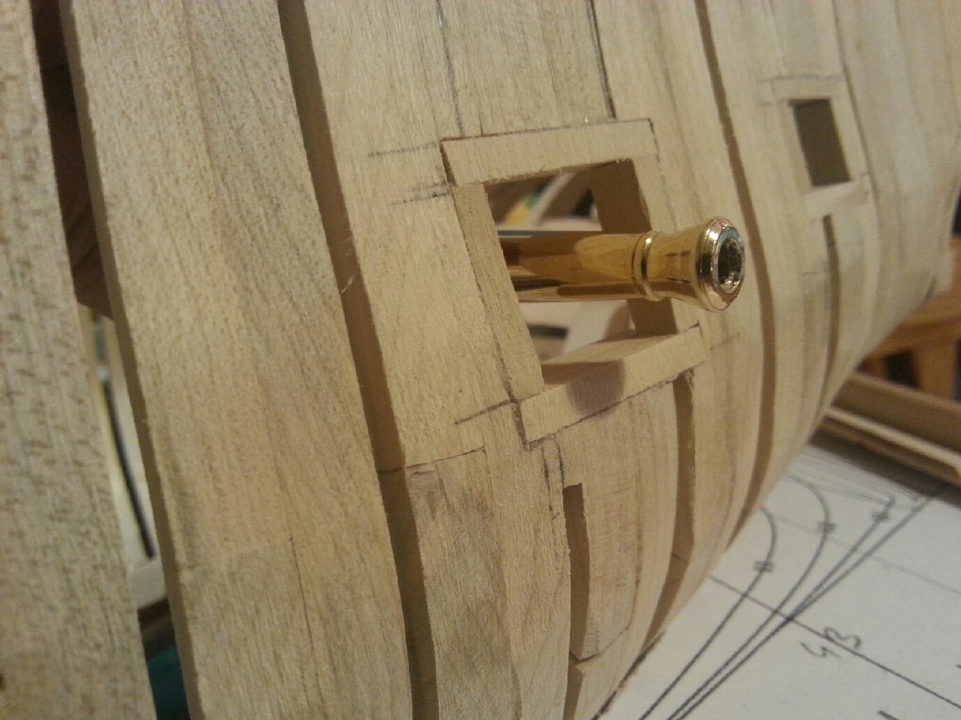 Dlatego wycinano luki dzialowe tam, gdzie chciano, niekoniecznie tam, gdzie wregi pozwalaly, tak aby zachowac symetrie ich biegu (lukow dzialowych) na przestrzeni burty a jednoczesnie zmaksymalizowac ilosc artylerii okretowej. Z tego tez powodu, bywalo tak, ze trzeba bylo dla jednego luku, naciac boki sasiadujacych z nim wreg, aby stworzyc dlan odpowiednia przestrzen, a dla innego luku, wstawic tam odpowiednie wypelnienia - aby zachowac ten sam ksztalt, kwadratowy czy czworokatny, romboidalny wszystkich lukow dzialowych.