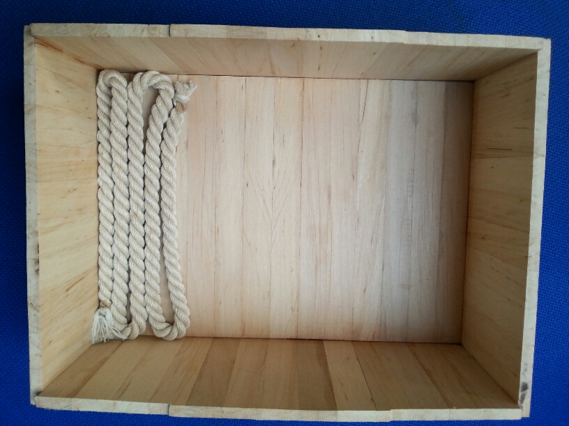 Skrzynia zostsła sklejona. Do jej wypełnienia będzie potrzebne ok. 20 metrów liny kotwicznej o grubości 7 mm. Będzie ułożona w 5 warstwach na przemian wzdłuż i w szerz skrzyni. Służyła jako amortyzator. Na zdjęciu pokazałem fragment linki z próbnego kręcenia. Na trzecim zdjęciu jest podłoga na której będą ustawione lawety moździerzy. W planach pominięto uchwyty za które podłoga była podnoszona. Nie znalazłem ich również w innych relacjach. Musiały jednak być , bo nie ma innego sposobu uniesienia ciężkiej podłogi.