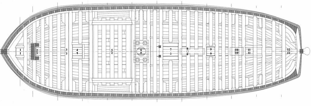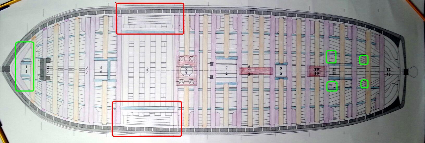 W zielonych ramkach , niedokończony przebieg desek poszycia wewnętrznego.