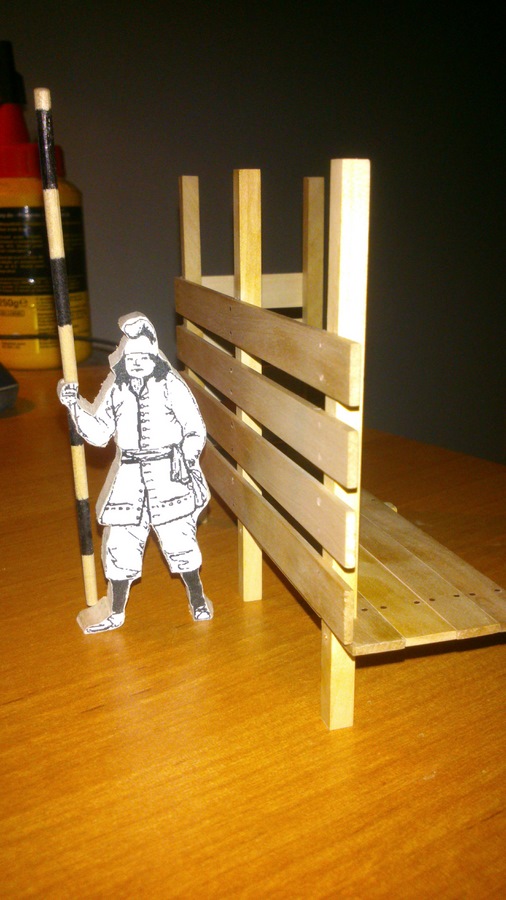 Imitacja kołków wykonana z miedzianego drutu o średnicy 1 mm, a gwoździe na odbojnicach to gwoździki z zestawu DeAgostini (na coś się przydały) czerniłem łebki gwoździków nad płomieniem ze świeczki w sumie to nad zniczem :lol: