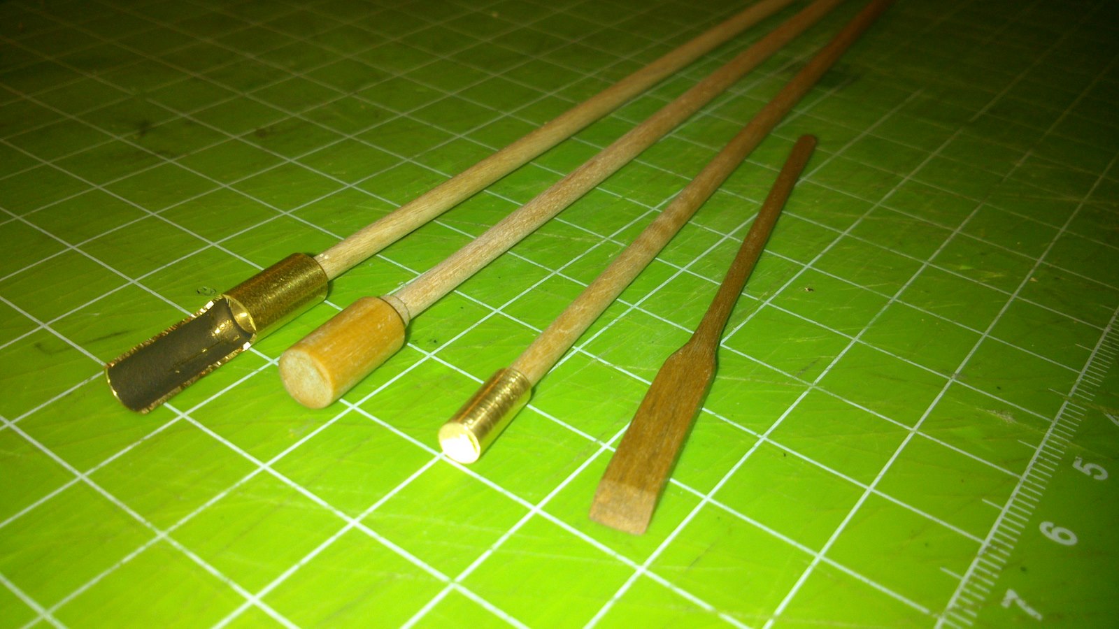 Zabrałem się za wyposażenie stanowiska artyleryjskiego i to co już udało mi się zrobić. Muszę poprawić (zrobić od nowa to co służyło do nasypywania prochu do działa, za dużo "zdjąłem" materiału z rurki :evil: ). Z czego można zrobić imitacje wyciora? Wełna, wata?