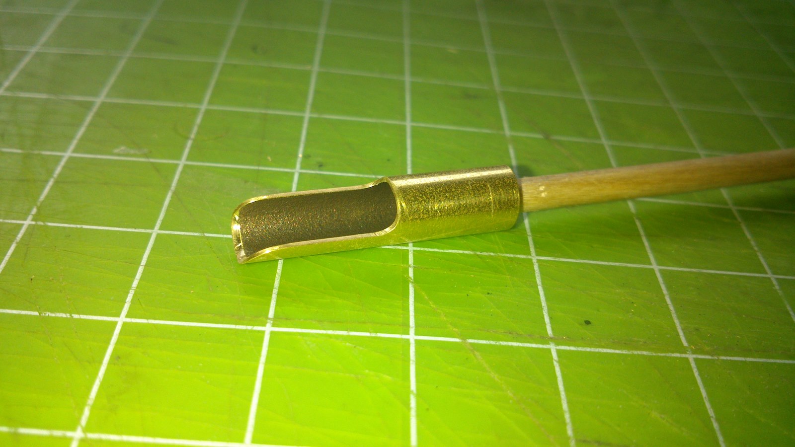 Drut miedziany, nacięty tarczą o grubości 0,5 mm.