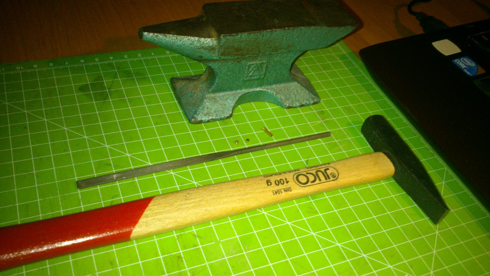 Następnie na mini kowadełko i zagiąć końce rurki przy pomocy iglaka i młotka. Raz jeden koniec raz drugi.