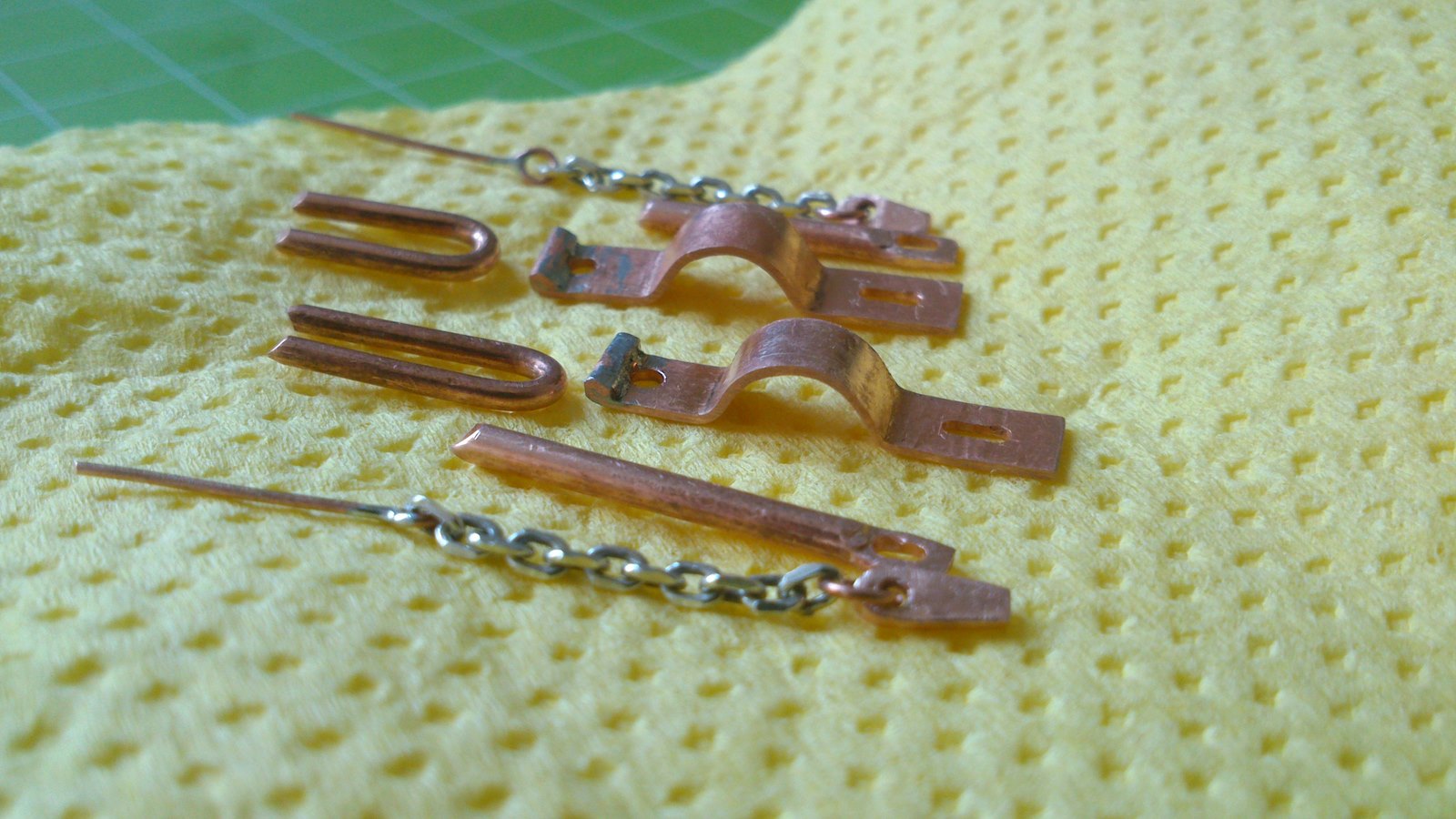 Czy mógłbyś dokładniej opisać jak zrobiłeś okucia (kausze?) umieszczone w oczkach haków - na foto zaznaczone strzałką.