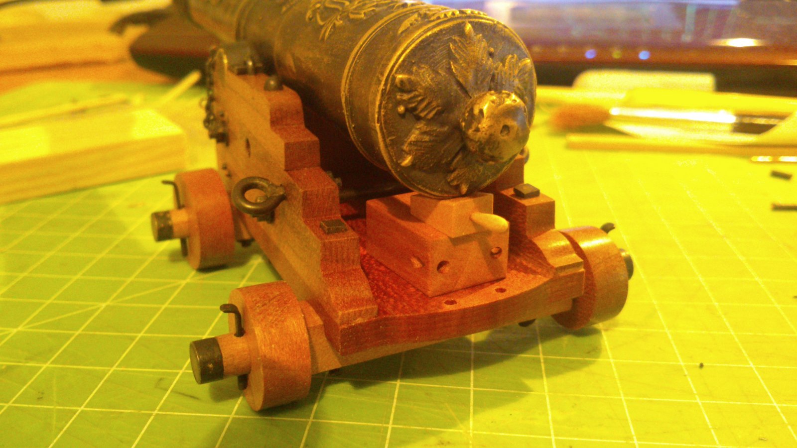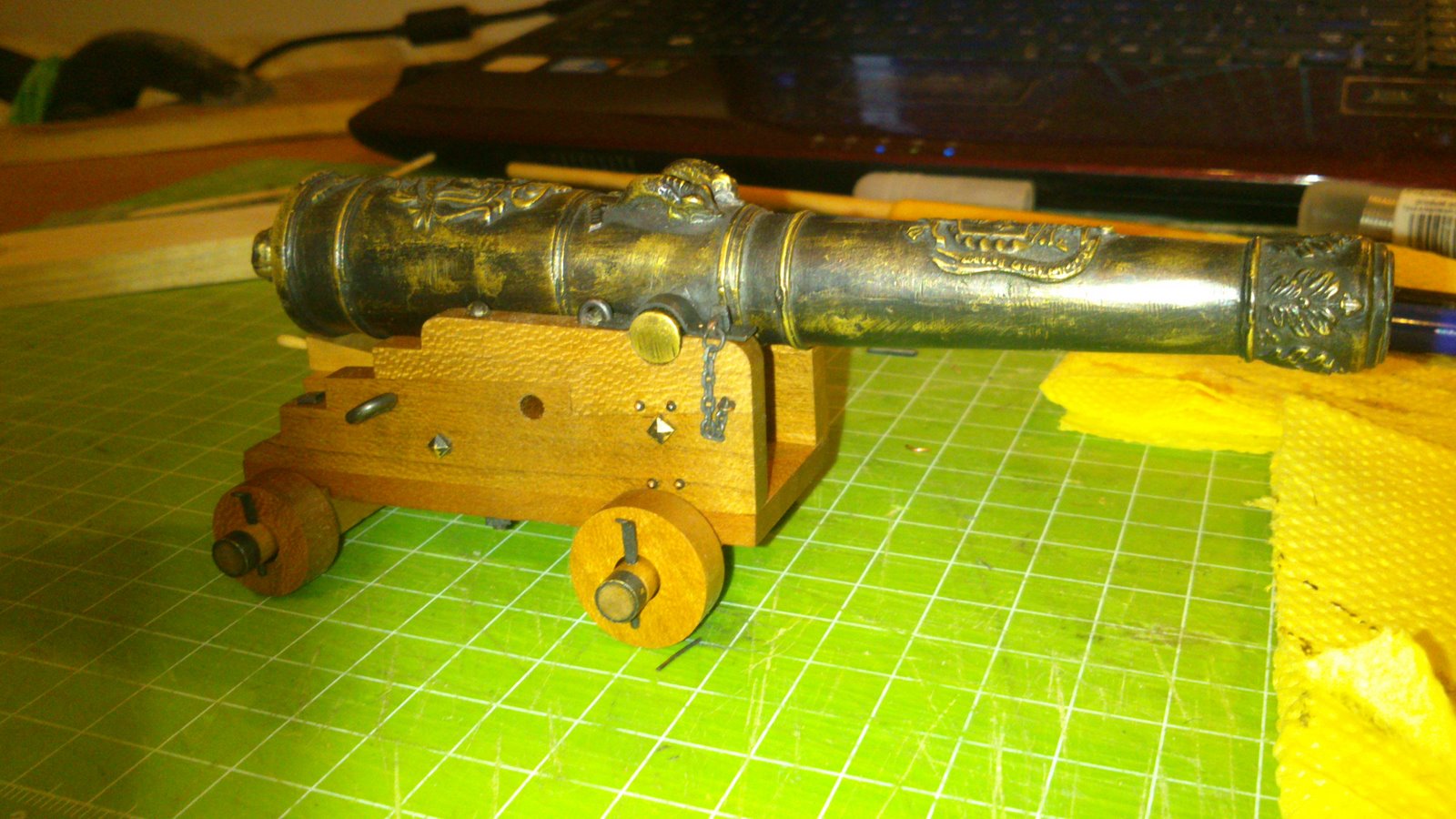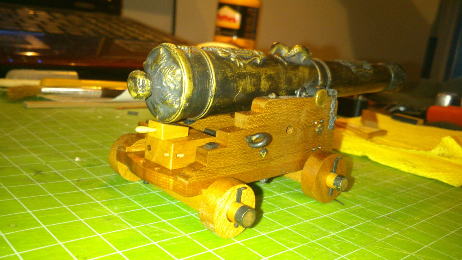 Działo skończone i pokryte miksturą od Mirka, choć jak na zdjęcia patrze to tego efektu nie widać, ale drewno nabrało super koloru i mi się bardzo podoba.