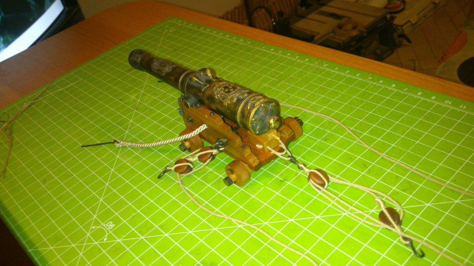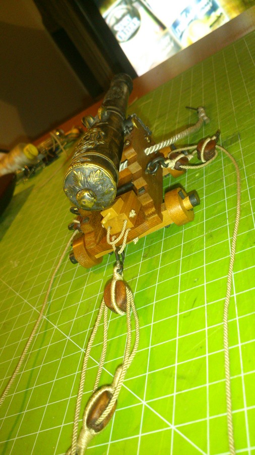 Kilka kolejnych zdjęć armaty, lina hamulcowa gotowa. Całość złożona tylko do zdjęcia.