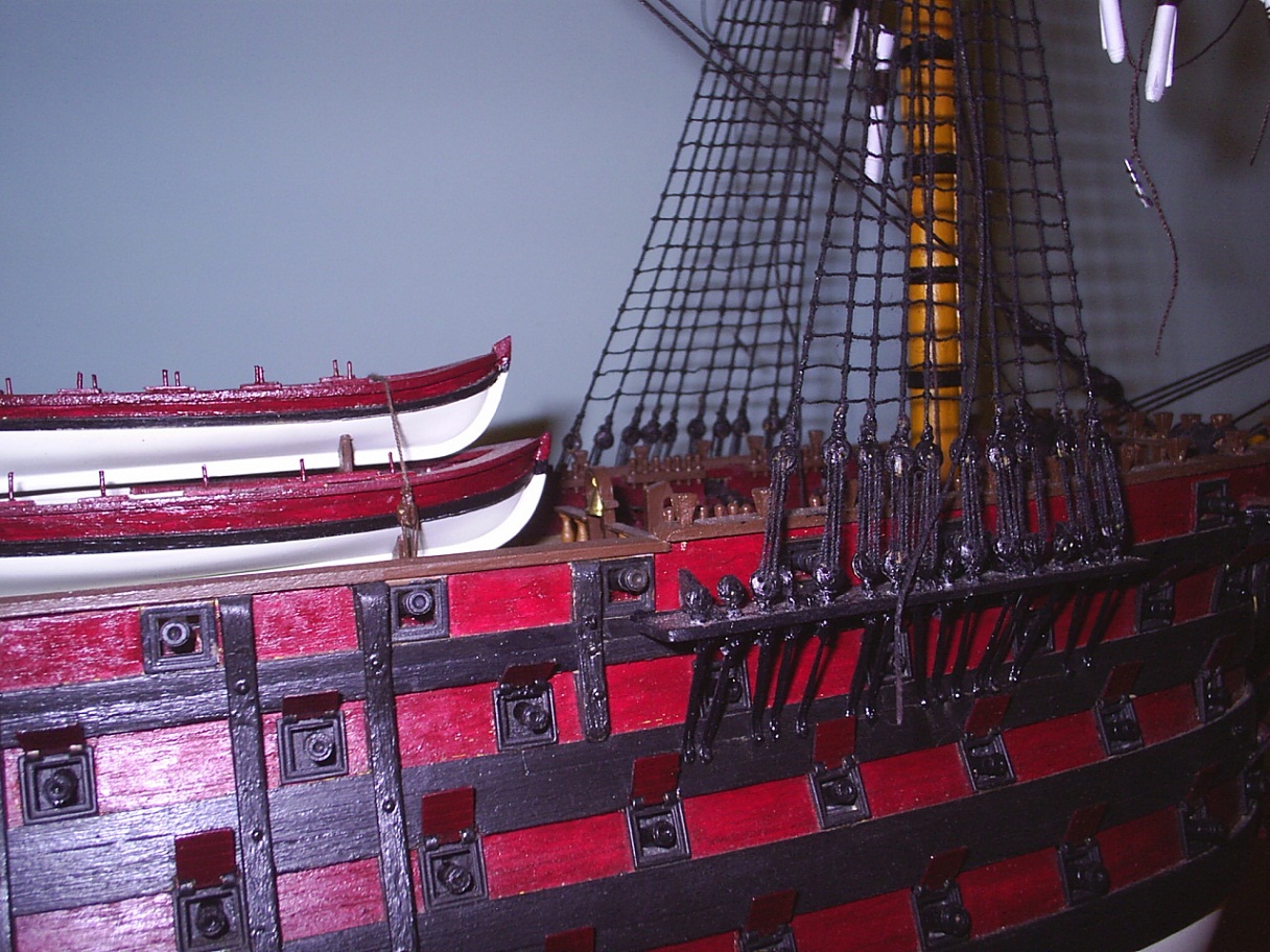 Źle wyznaczyłeś linię wodną. Linia wodna jest najmniejszą odległością od odbojnicy do powierzchni płaskiej na której stoi okręt i jest jednakowa na całej długości kadłuba. Bardzo dobry przyrząd do wyznaczania tej linii możesz kupić u kolegi Romanowa.