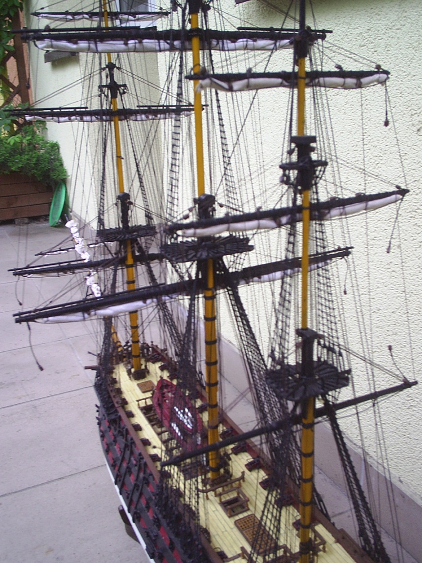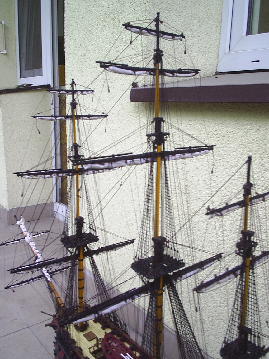 Prace przy modelu troszkę się posunęły do przodu.Zawiesiłem wszystkie reje.Przedstawiam