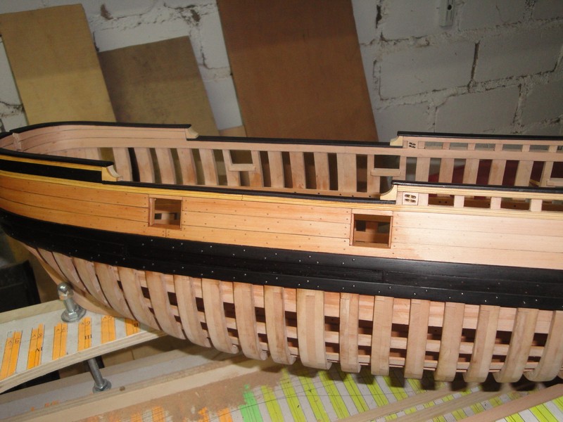 Wystrugalem takie detale, jakies bloczki w burtach. Otwory wyfrezowane, walki kupne tu: rbmodel.pl