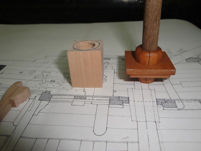 Przed koncowym sklejeniem konstrukcji podpokladowej musialem jeszcze wystrugac kilka szczegolow: elementy mocowania masztow w pokladzie oraz jakies tam pseudo schodki.