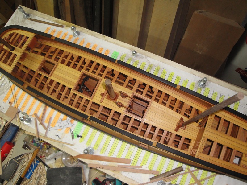 Myszor, pod lawety przyjda dodatkowe kawalki desek. To umocowanie masztu ma na modelu 3,5cm i wg planow jest z jednego kawalka drewna (a nie drzewa). W realu to przy skali 1:24 raptem 84cm. Kiedys byly grubsze deby.
