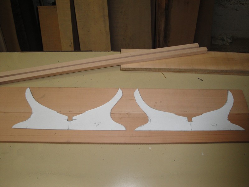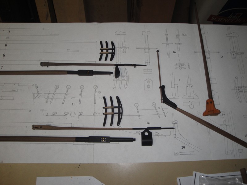 Zaczalem strugac patyczki na maszty. Materialy to orzech i heban. W koncepcji jest model z opuszczonymi masztami i czesciowym olinowaniem. Ma to mniej wiecej tak wygladac jak u Riccardo Matterry, (http://olivier.gatine.free.fr/rm/index.html).