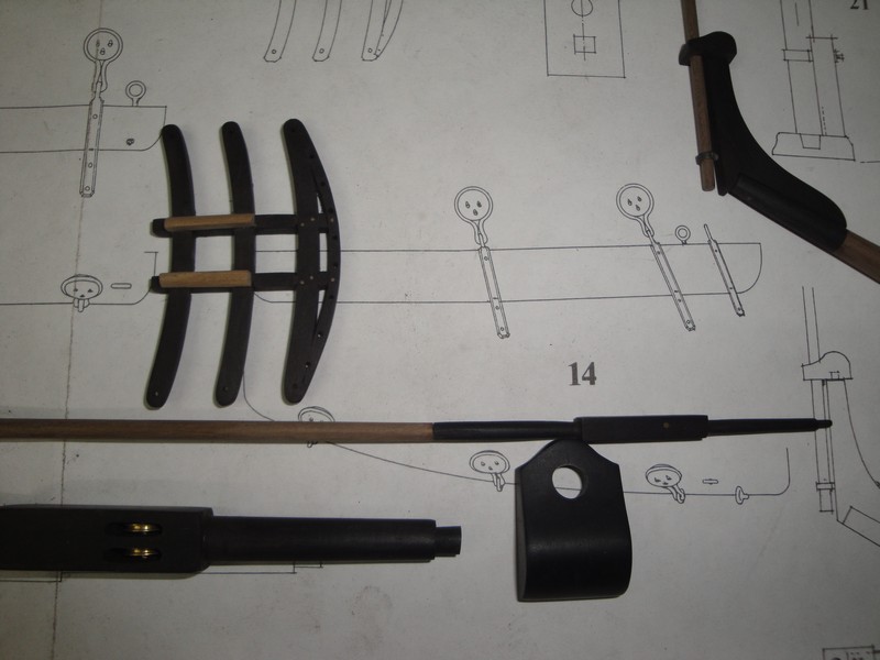 no i przyszedl czas na ostatnie kawalki drewna; wystrugalem dolne reje (material to heban). Teraz juz nic mi nie pomoze i trzeba sie bedzie zabrac za bloczki, linki i supelki.