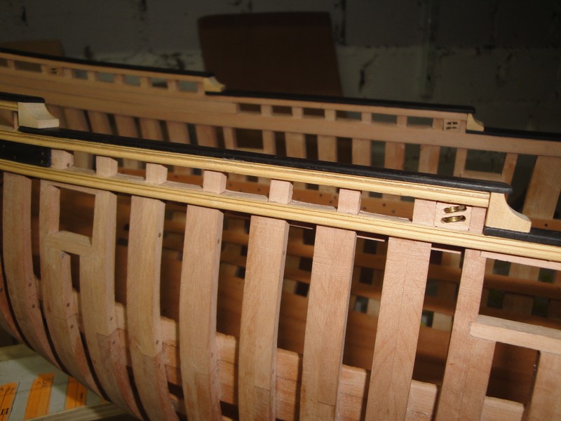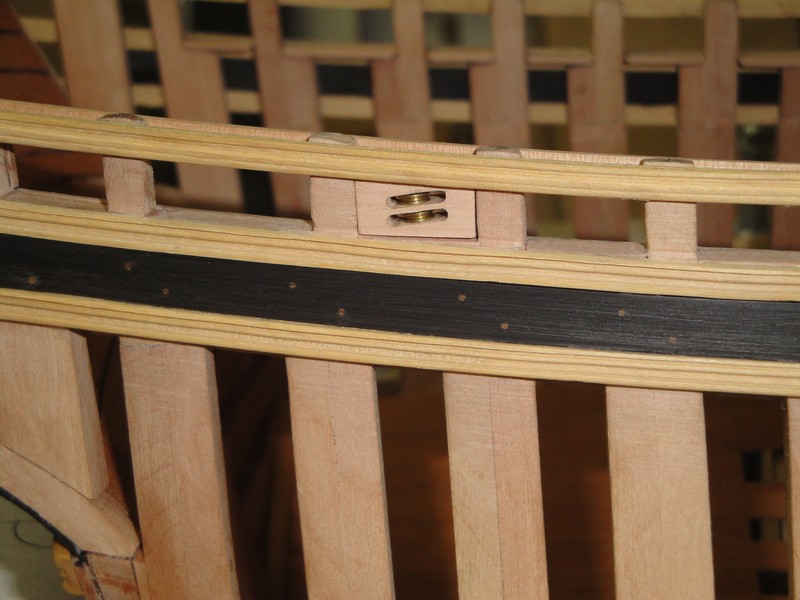 Wystrugalem takie detale, jakies bloczki w burtach. Otwory wyfrezowane, walki kupne tu: rbmodel.pl