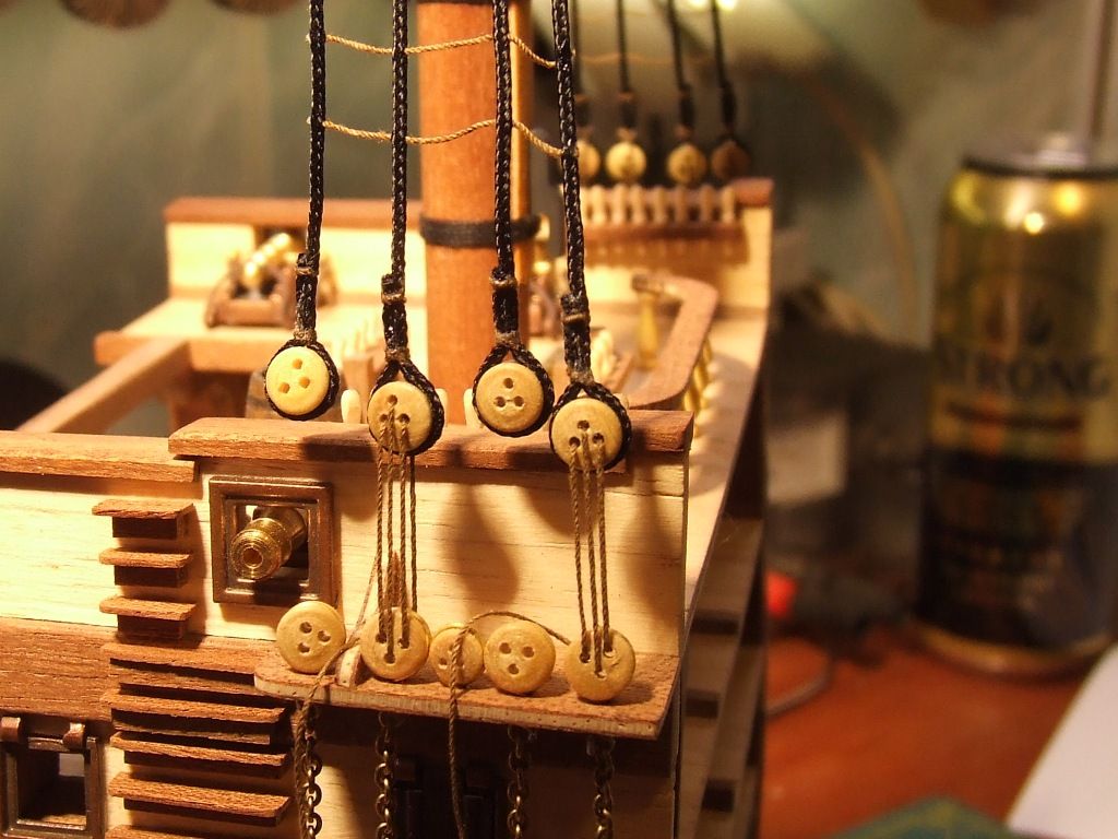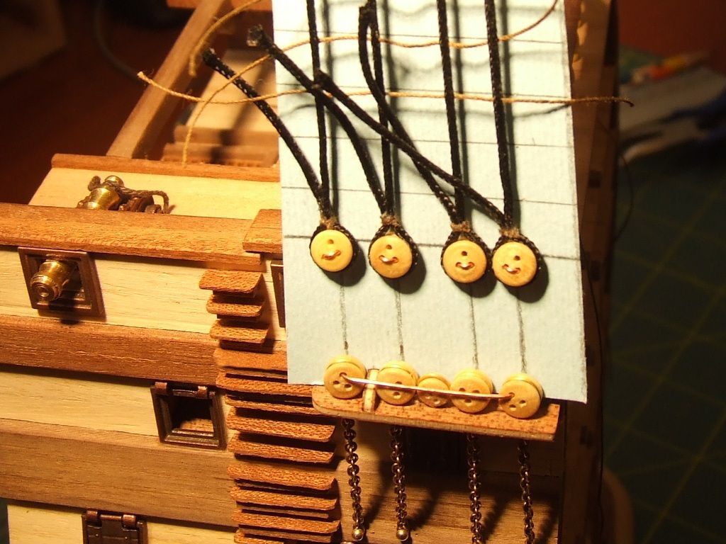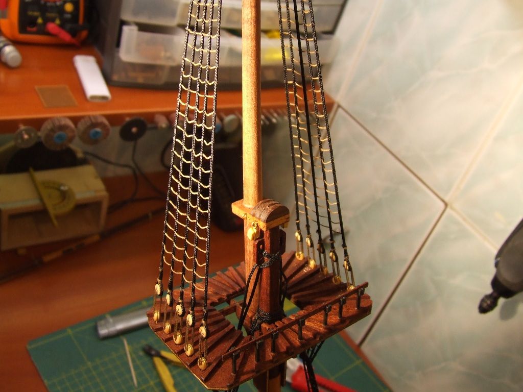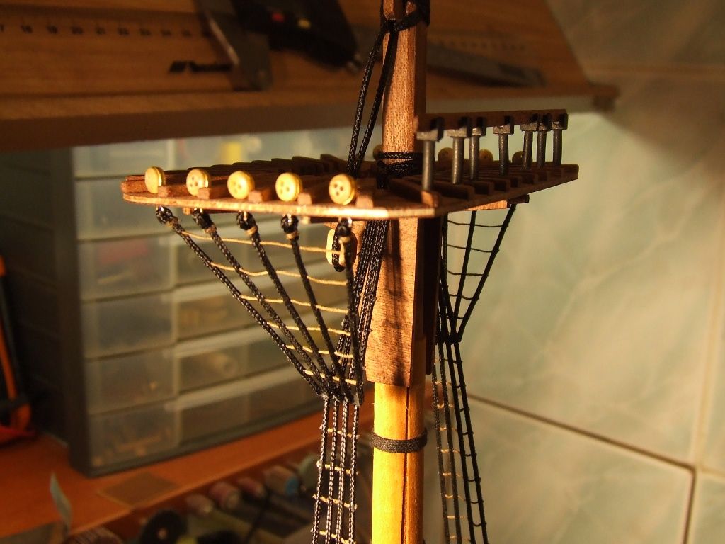 Reje żagli wytykowych pozostawię ruchome, z zabezpieczeniami jak na planie.