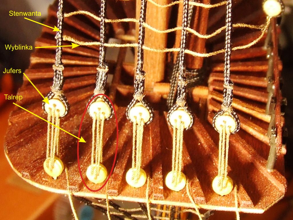 Takie ósemki były w zestawie i takie zamocowałem na rejach.