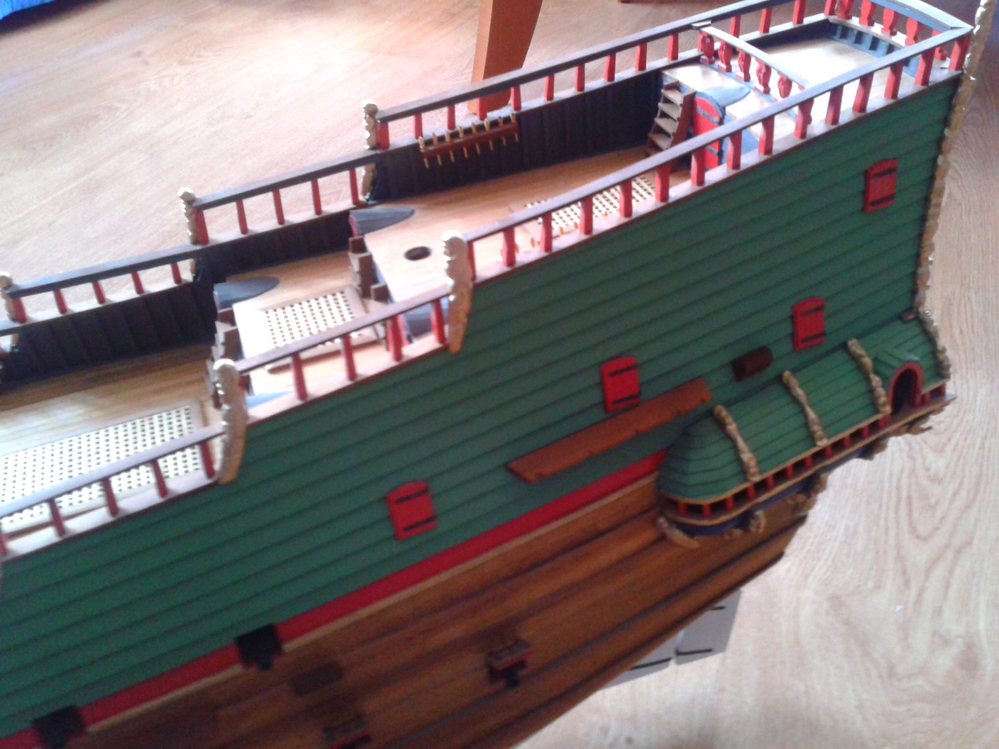 Witam po nieco dłuższej przerwie. Niemal każdą wolną chwilę poświęcałem na modelowanie, a że było ich niewiele, to i efekty skromne.Przyklejone na miejscach:Wykonanie pozostałych dużych elementów (szalupa, kotwice i latarnia) pozostawiam na później, jako przerywnik w czasie prac przy takielunku.