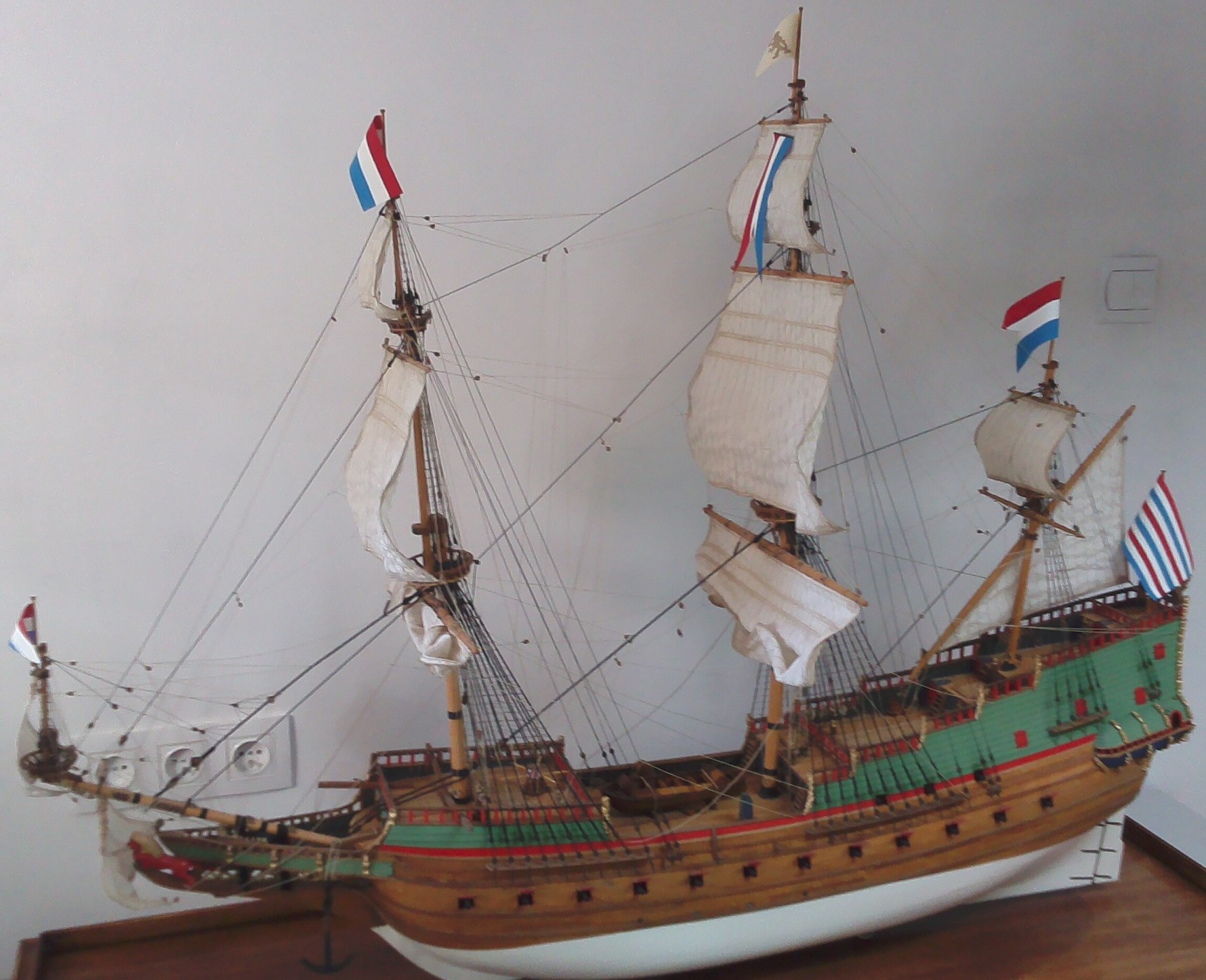 Można zauważyć też błędy dotyczące samego wykonania, np. pokłady (niejednolite odcienie klepek) i przede wszystkim żagle ( zbyt pomarszczone).