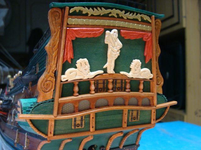 Zabudowałem śródokręcie.Dużo miejsca na pokładzie aż się prosiło żeby postawić tam szalupę.No i dzwonnicę,bo co to za okręt bez dzwonnicy i...bez szklanek.Jeszcze parę drobiazgów i trzeba jakieś straszydła rzeżbić.