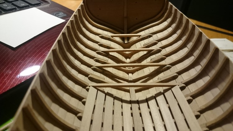 Rozumiem, że na stępkę będzie naklejone jeszcze lico? Widać też kilka niewielkich szparek między klepkami poszycia, ale zapewne uda się to zamaskować.