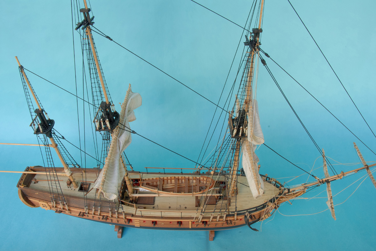 Obecnie jestem na etapie modelowania kolejnych zagli z olinowaniem ruchomym, ktore beda pokazane jako czesciowo zrefowane, w pozycji tzw. “brailed up”.