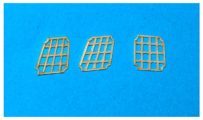 Zrobiłem je jak wcześniej z pasków forniru, tylko ścieniłem do grubości forniru czyli do 0,6 mm. I pojawił się problem. Przez nieprecyzyjne nacięcia szczelin, większość "wąsów" ledwo się trzymała lub poodpadała.