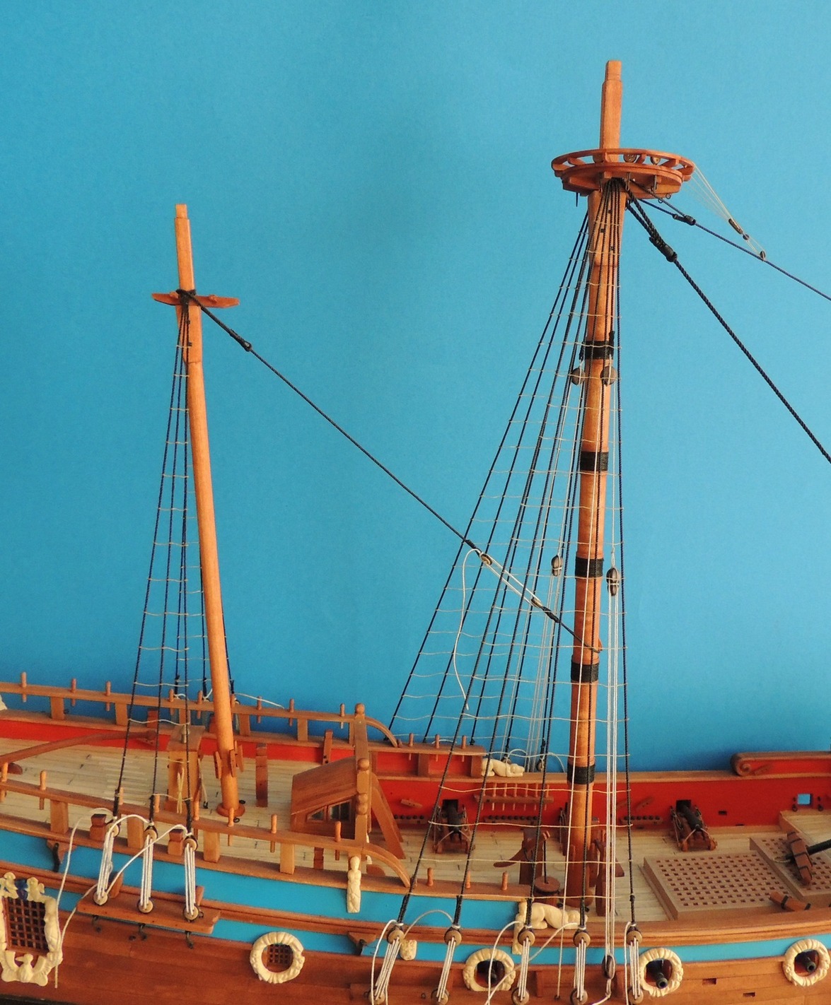 Bardzo ładne i staranne wykonanie kadłuba i detali, będzie extra model. Uważam, że zawiesiłeś sobie porzeczkę na tak wysokim poziomie, że przy żaglach powinieneś go utrzymać tym bardziej przy tej skali.