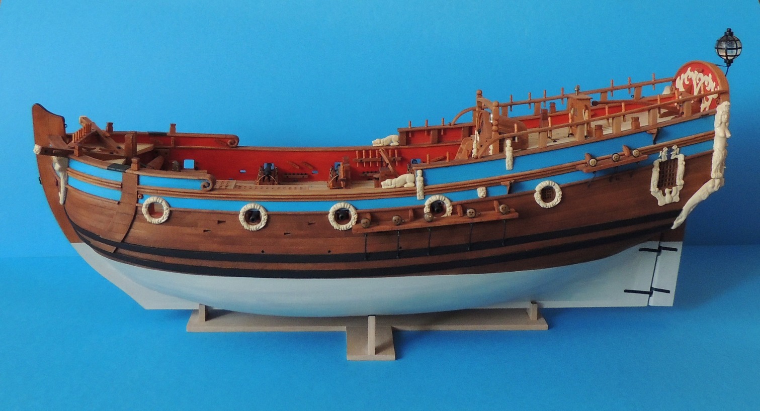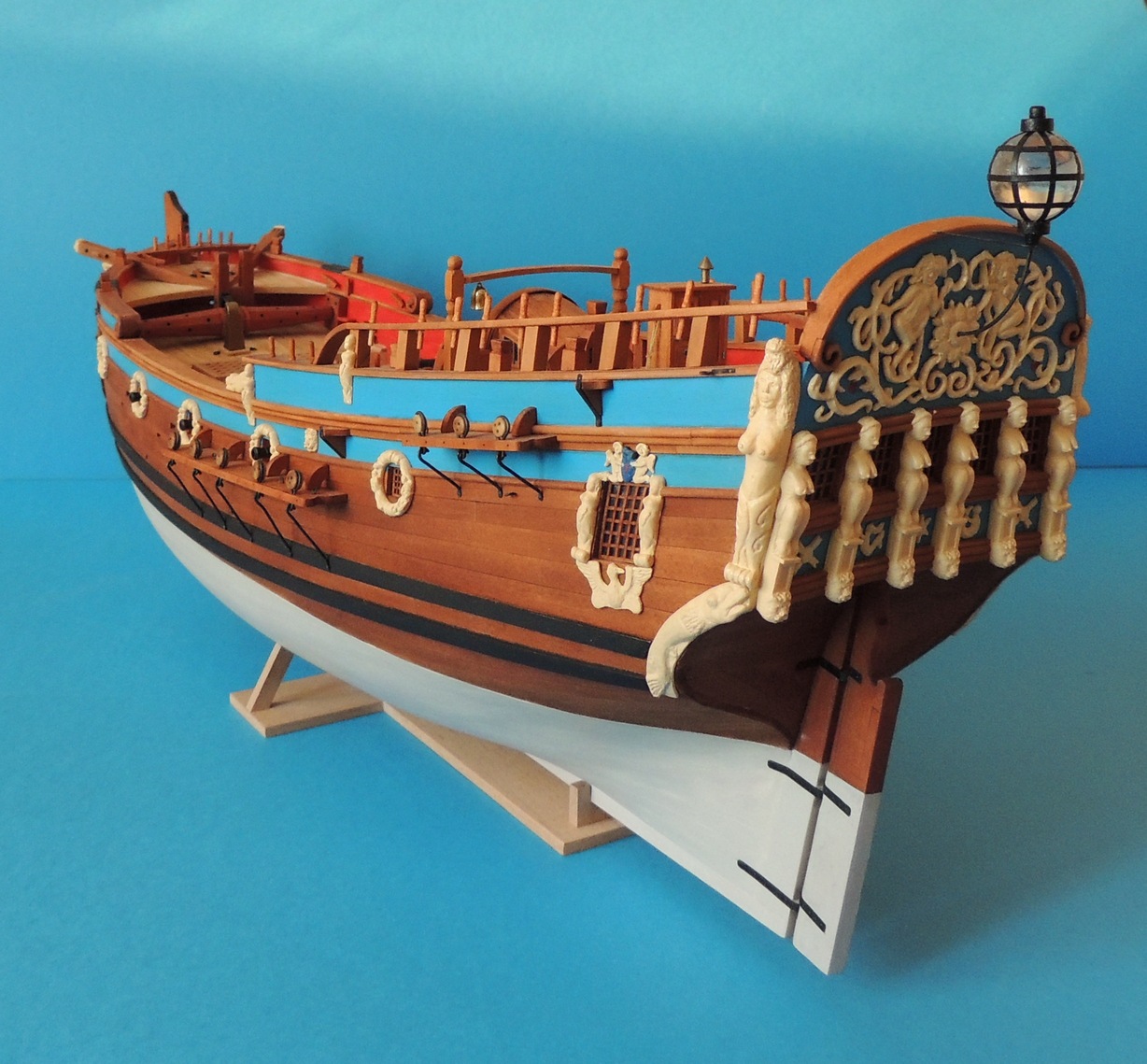 Ostatnim etapem przed stawianiem masztów, jest wykonanie latarni. Wpadłem na pomysł, żeby odlać ją, z przeźroczystej żywicy. Tradycyjnie wykonałem formę, a później odlew. I tak to wyszło.