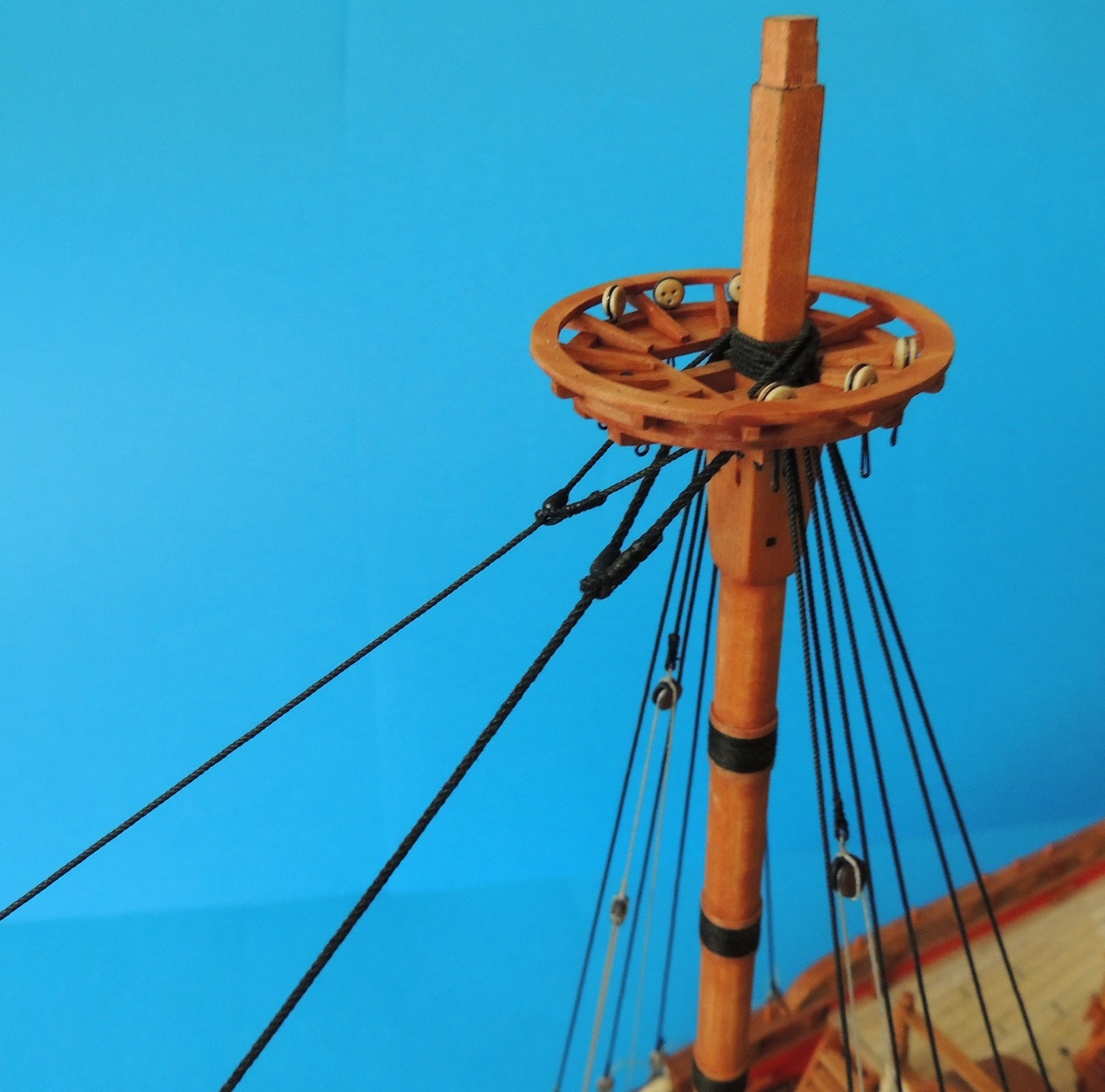 Wanty grotmasztu zawiązane, więc pora na sztagi.
