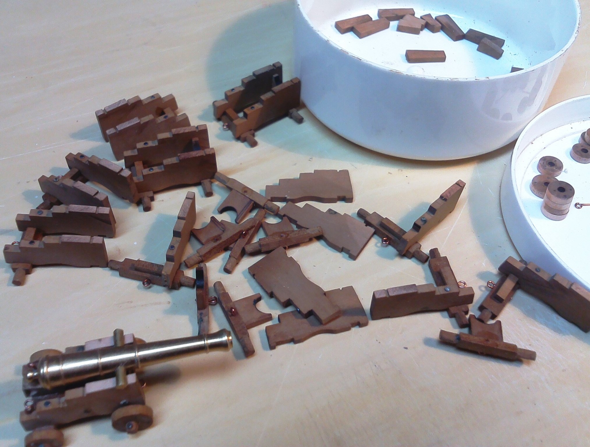 Elementy składowe lawet wykonałem z drewna gruszy, jedynie koła z jabłoni: