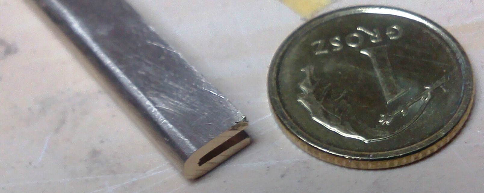 Pociąłem frezem piłkowym na pilarce. Plasterki mają grubość 0,2mm: