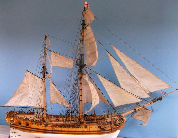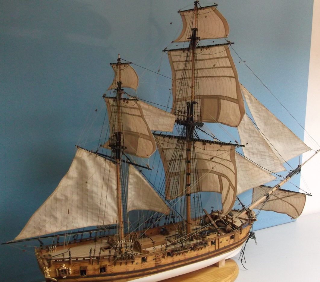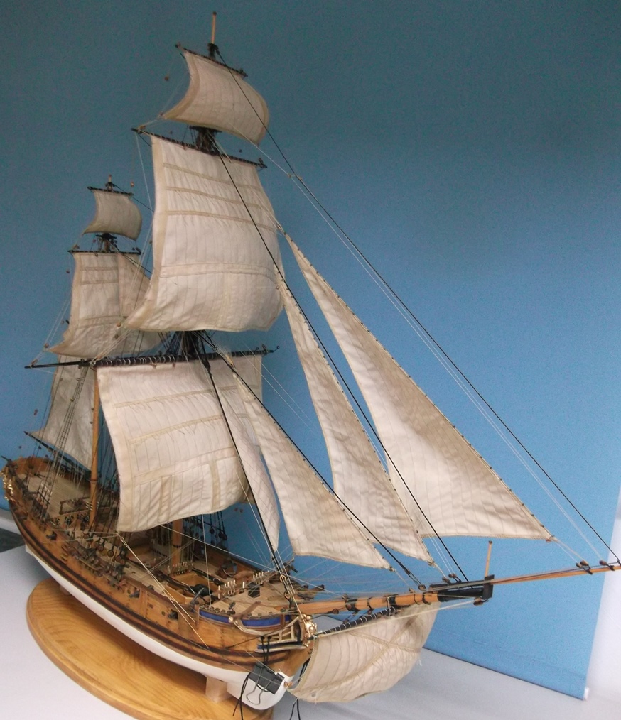 Chciałem, żeby żagle były dobrze "wypełnione" wiatrem i trochę mnie chyba poniosło. W efekcie grotżagiel nieco koliduje ze sztakslem, ale nie chciałem z niego rezygnować. :)