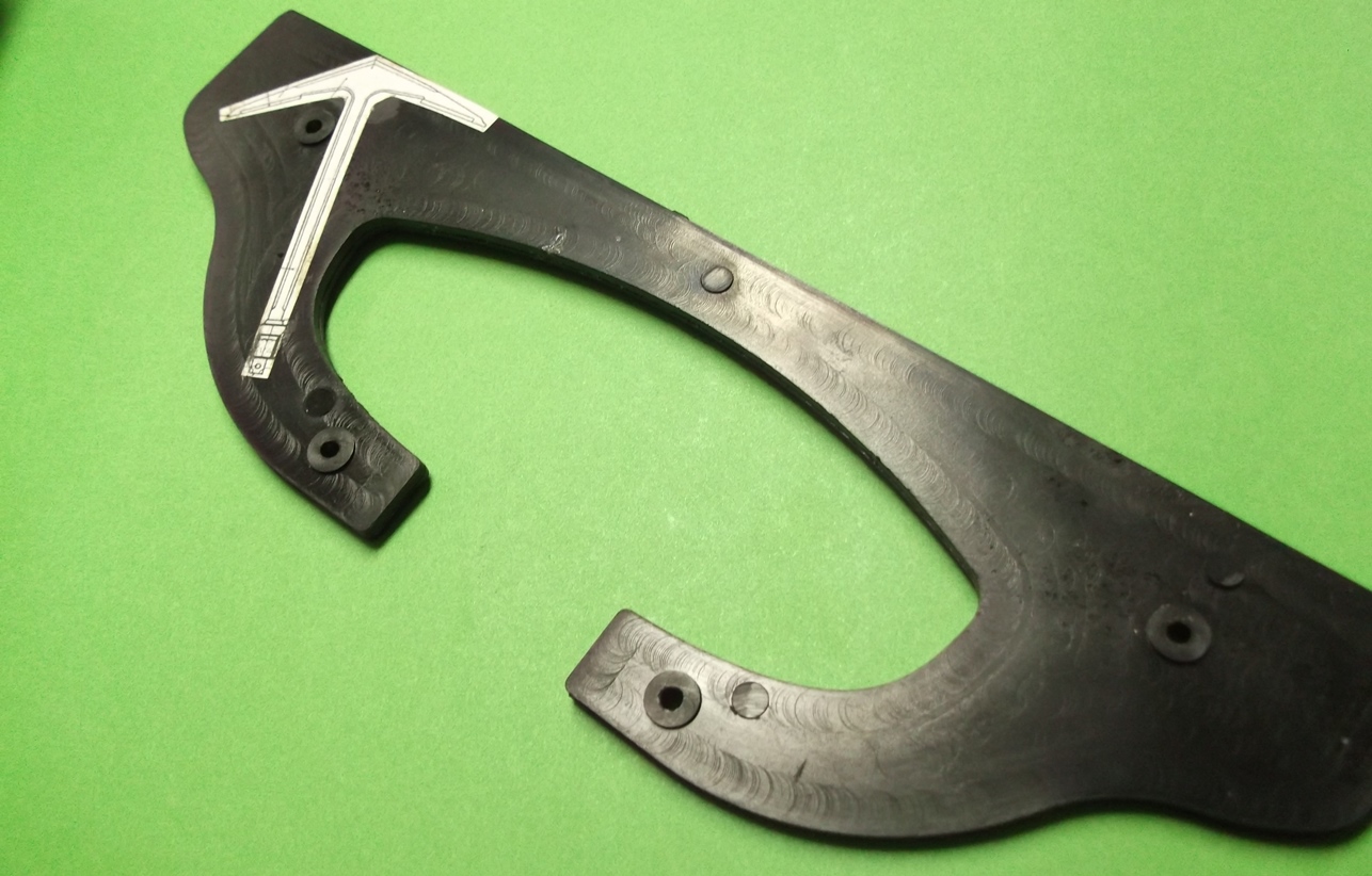 Całkiem przypadkiem zepsuł się opiekacz do kanapek i po jego rozłożeniu na części, okazało się, że niektóre elementy można wykorzystać. Ten dekielek jest z jakiegoś bardzo twardego tworzywa sztucznego, trudno się wycina, ale łatwo szlifuje i skrawa: