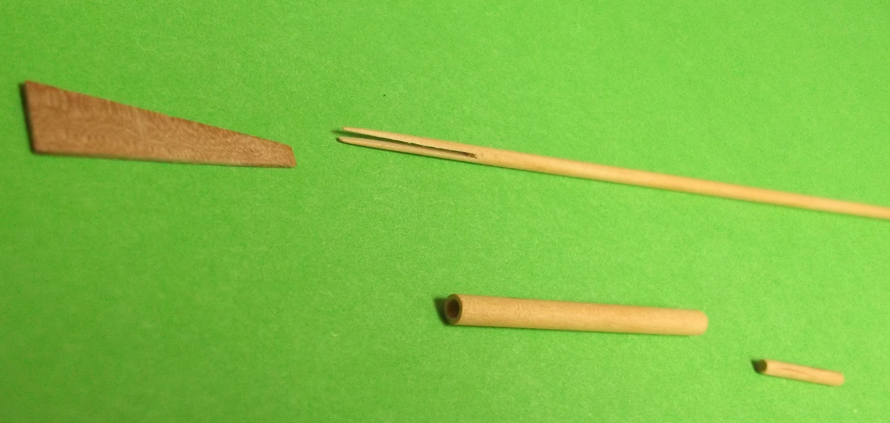 Papierem ściernym nadałem listewkom cechy wałków; drzewca olchowe, a płetwy z gruszy: