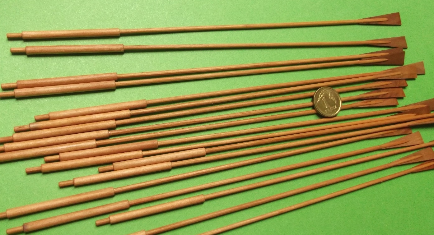Komplet osiemnastu wioseł do alternatywnego napędu okrętu: