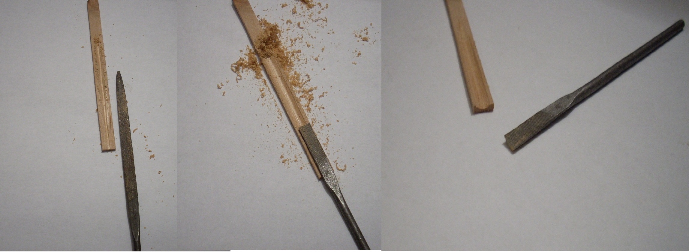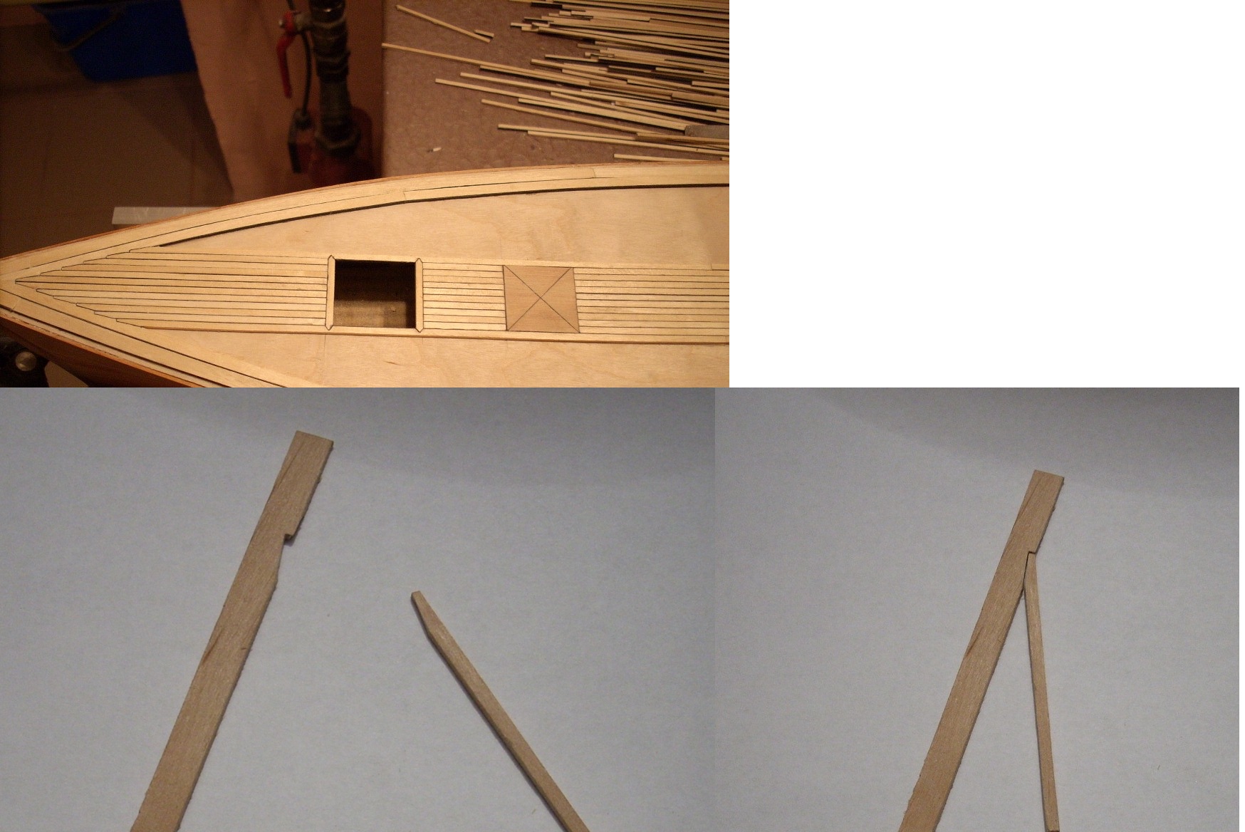 Na zdjęciu pokazałem, która to jest deska przed wykonaniem jeszcze zagłębienia, łatwiej mi było wykonywać zagłębienie na desce przyklejonej do pokładu . Zdjęcia pokazują jak to robiłem używając pilnika półokrągłego, najpierw do zrobienia rowka prowadzącego a póżniej takim złamanym pilnikiem zrobiłem odpowiednie wgłębienie