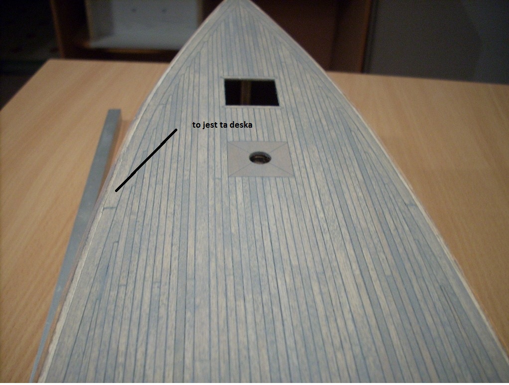 Pytałeś się także, jak robiłem zagłębienie w powierzchni pokładu biegnące wzdłuż burty spełniające rolę rynny dla wody, która znalazła się na pokładzie czyli tak zwany Waterwajs Odprowadza ona wodę do odpływników (skalopsów) będących otworami w poszyciu.