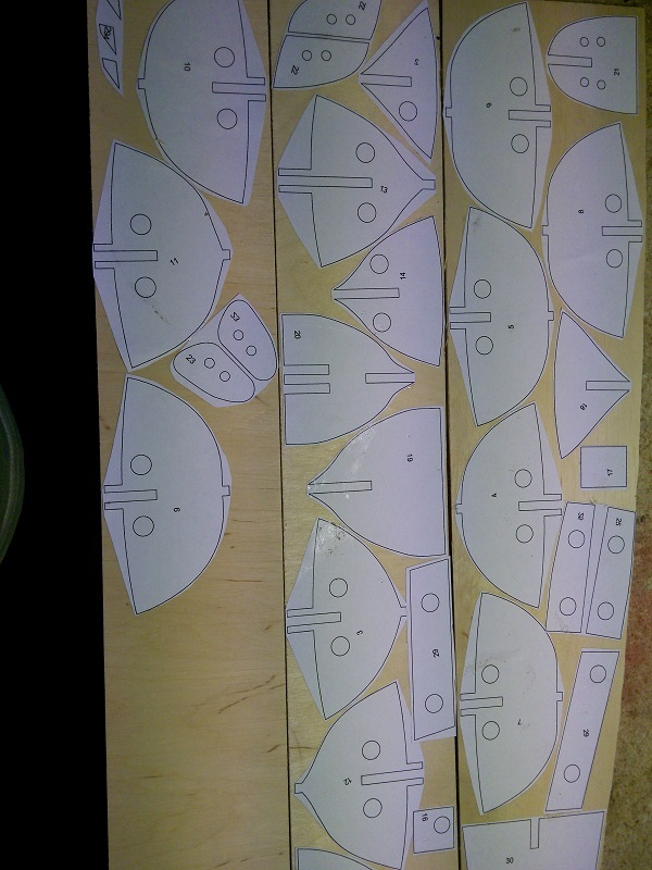 Budowę rozpocząłem prawie miesiąc temu parę detali, natomiast wręgi miałem nadzieje wyciąć maszynowo ale dużo poprawek w rysunkach. Skończyło się na ręcznym cnc.